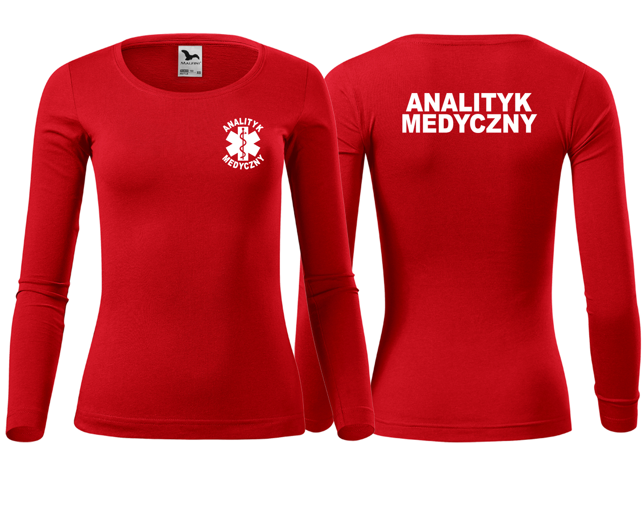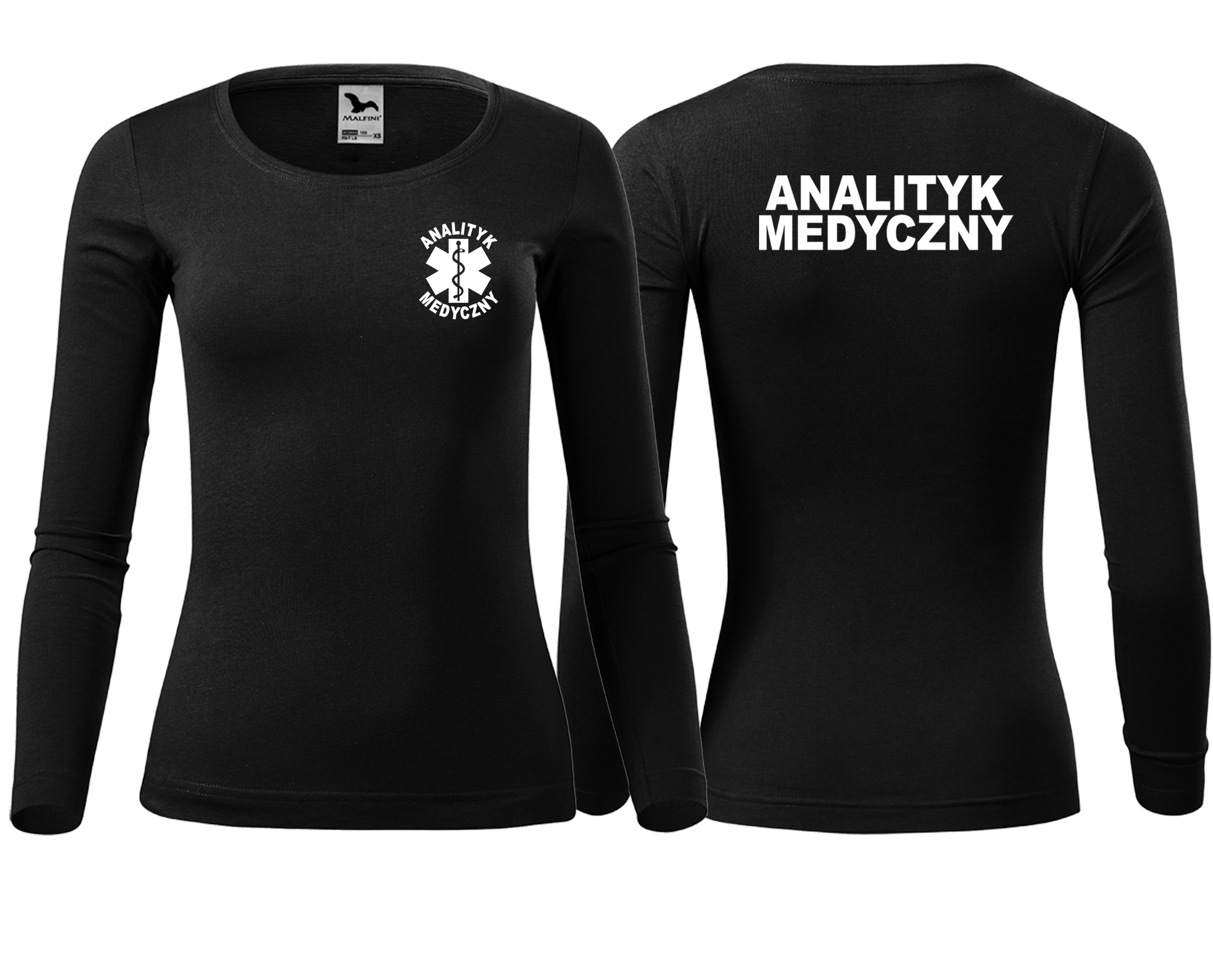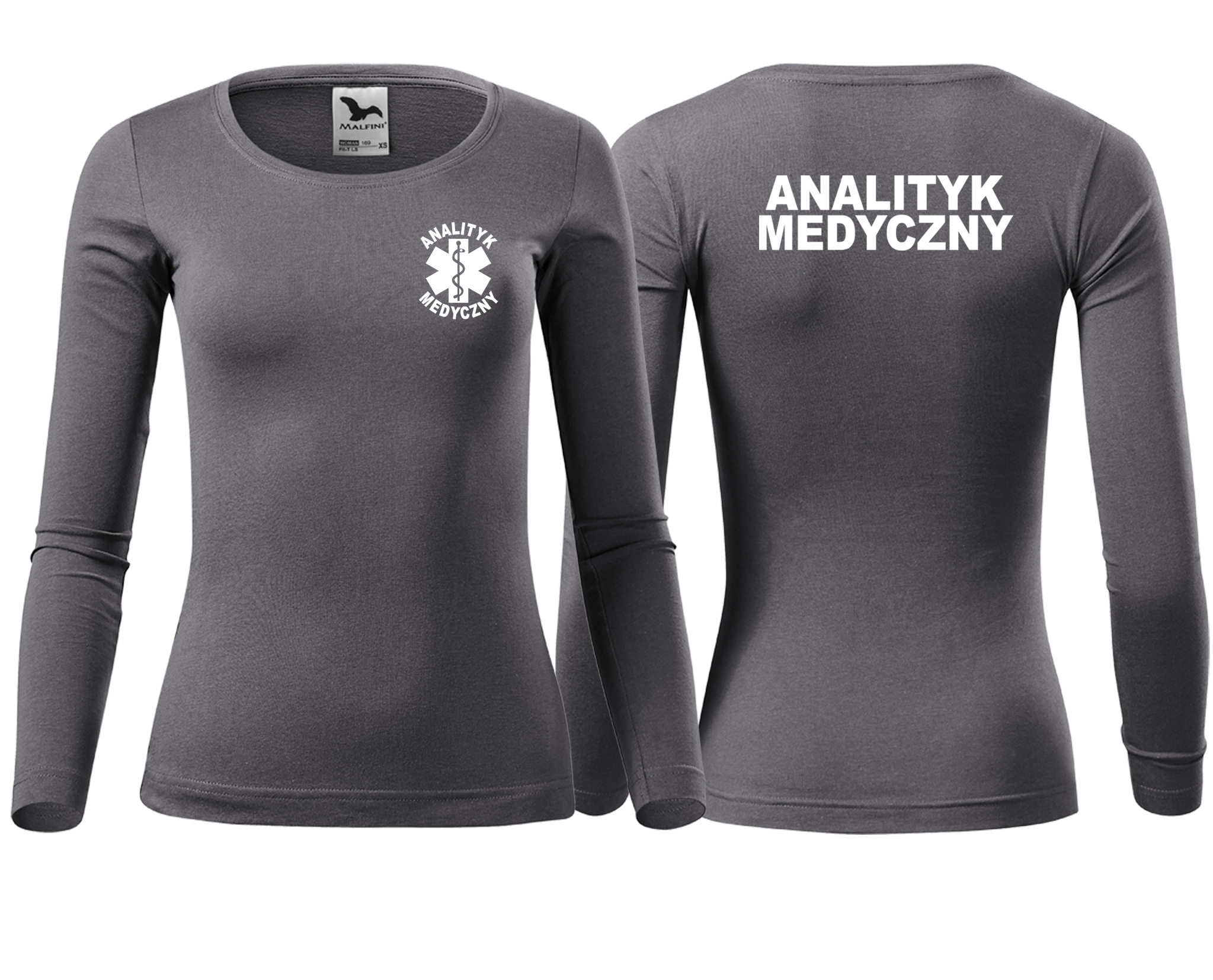 Koszulka damska z długim rękawem Fit-T LS ANALITYK MEDYCZNY nadruk PRZÓD I TYŁ