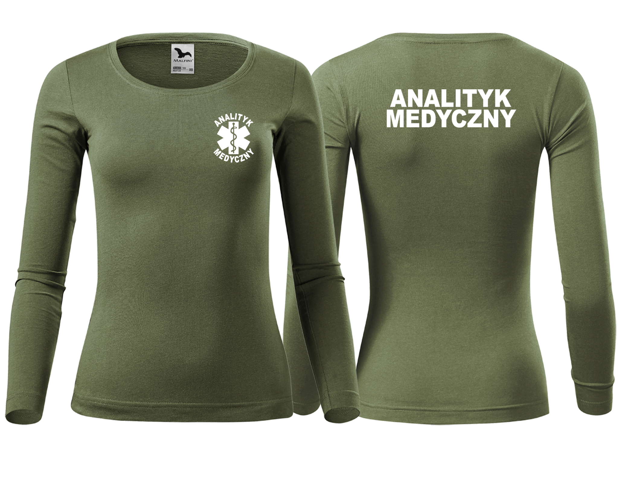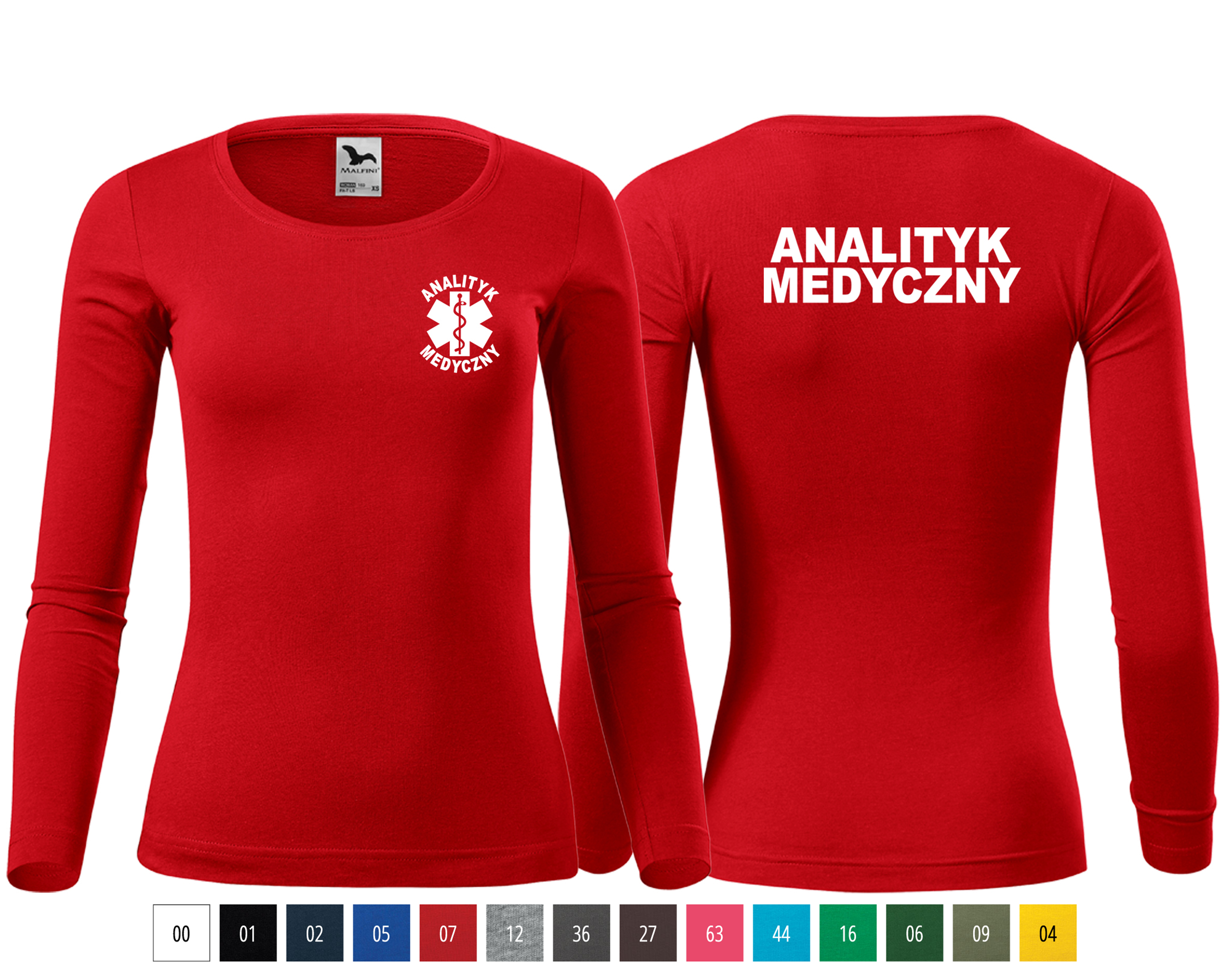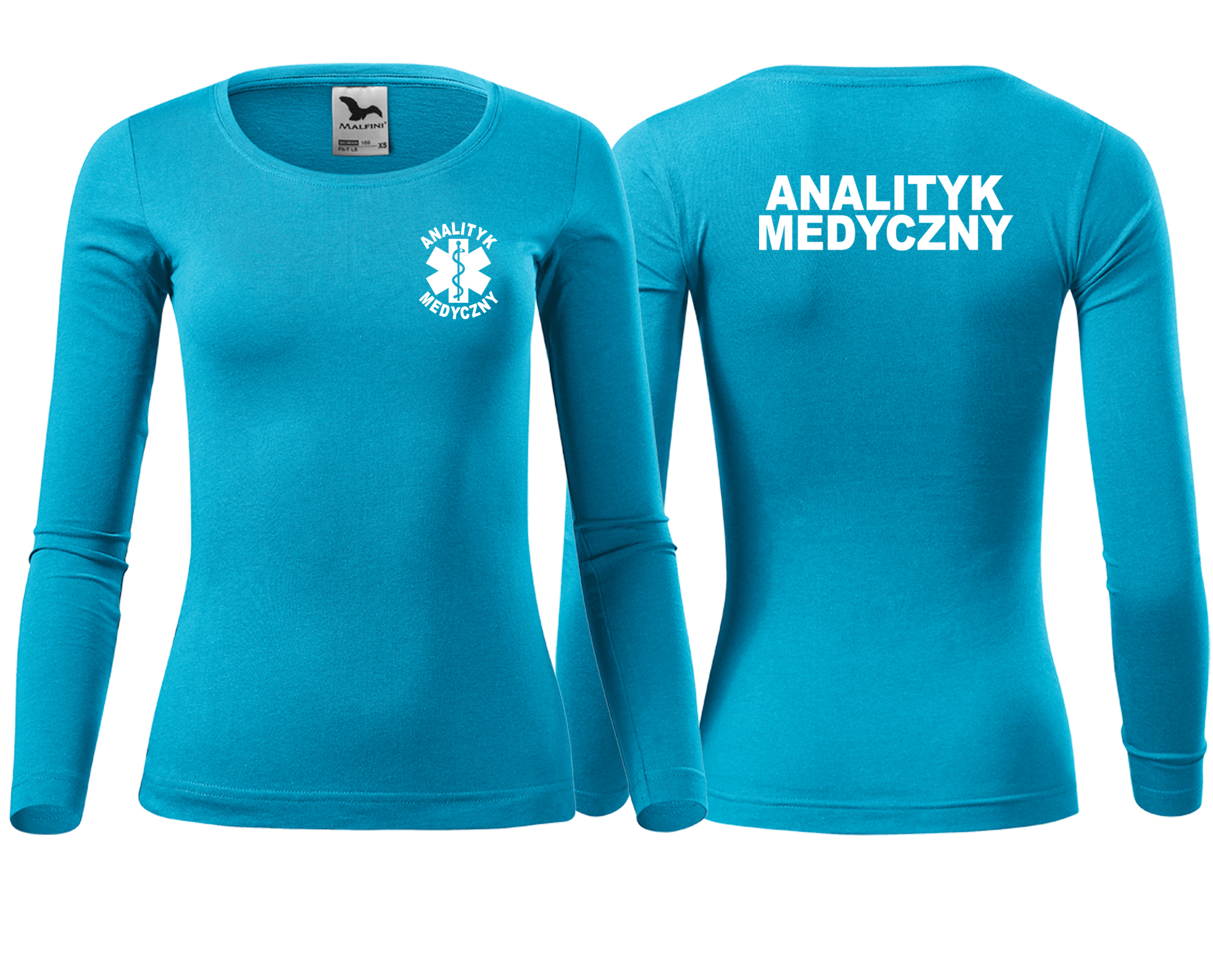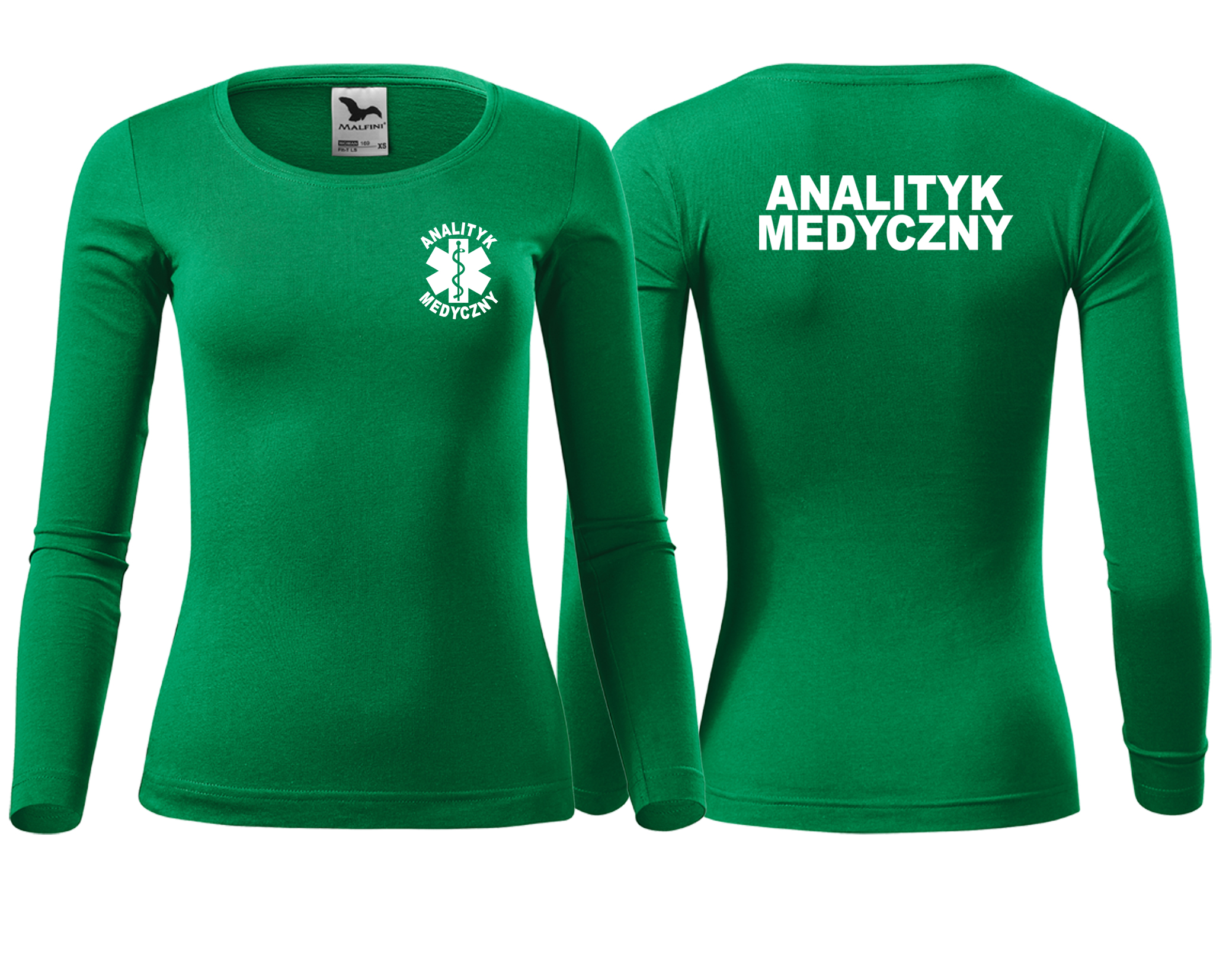 Koszulka damska z długim rękawem Fit-T LS ANALITYK MEDYCZNY nadruk PRZÓD I TYŁ