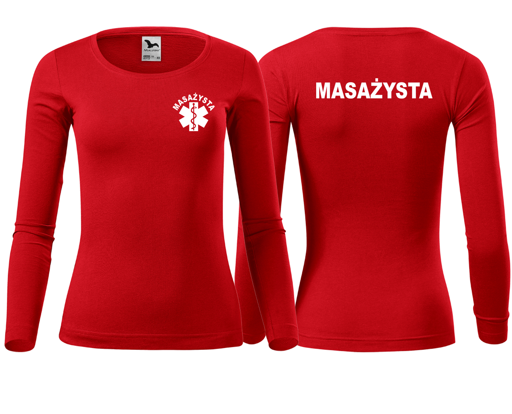 Koszulka damska z długim rękawem Fit-T LS MASAŻYSTA nadruk PRZÓD I TYŁ