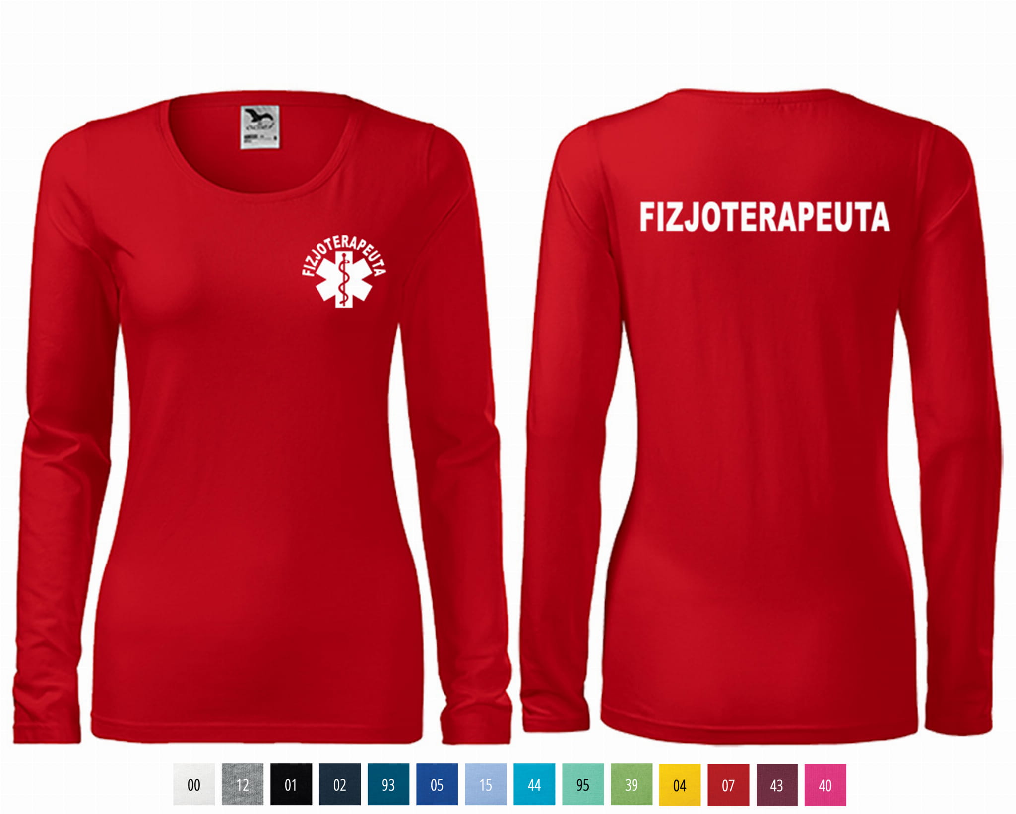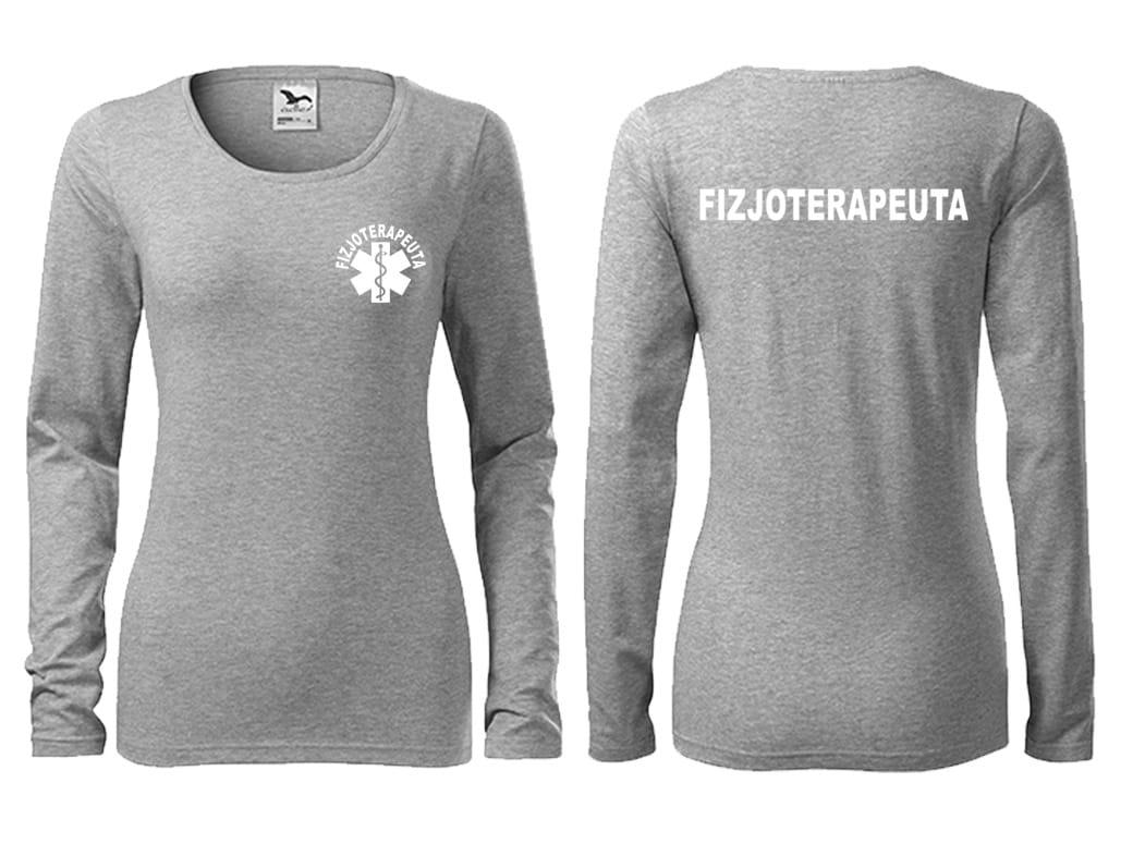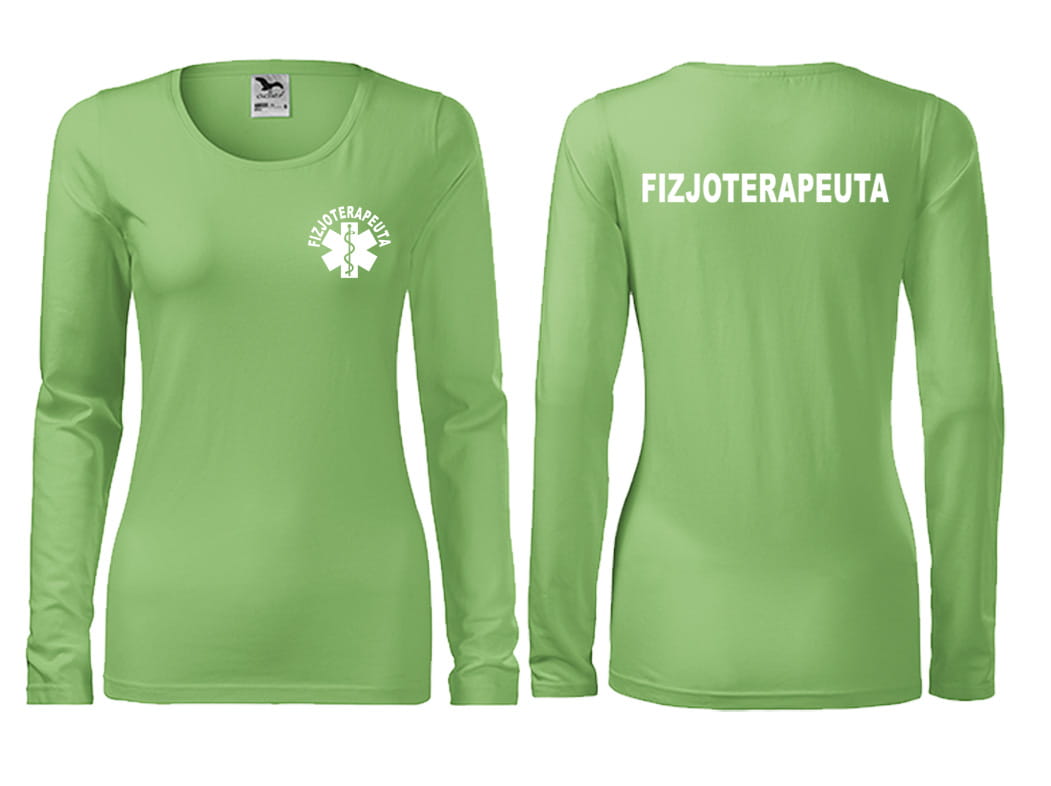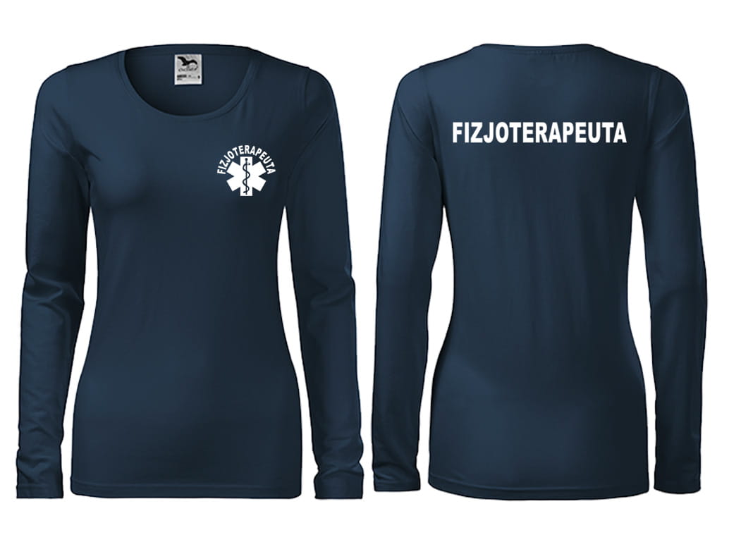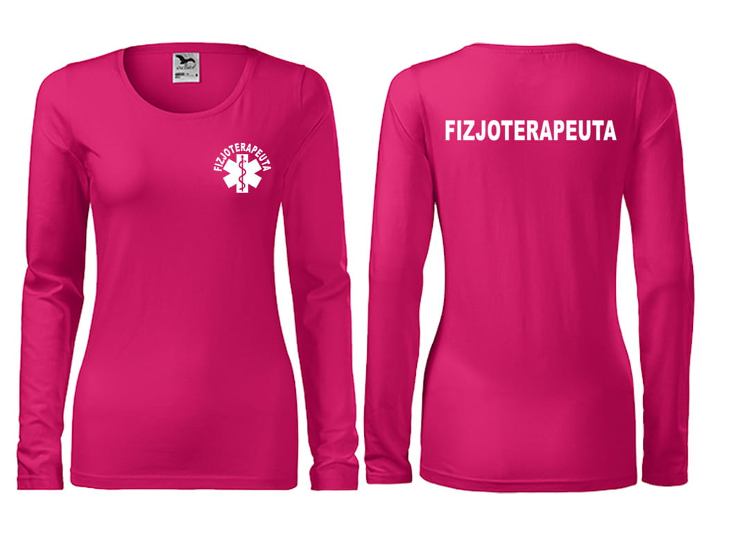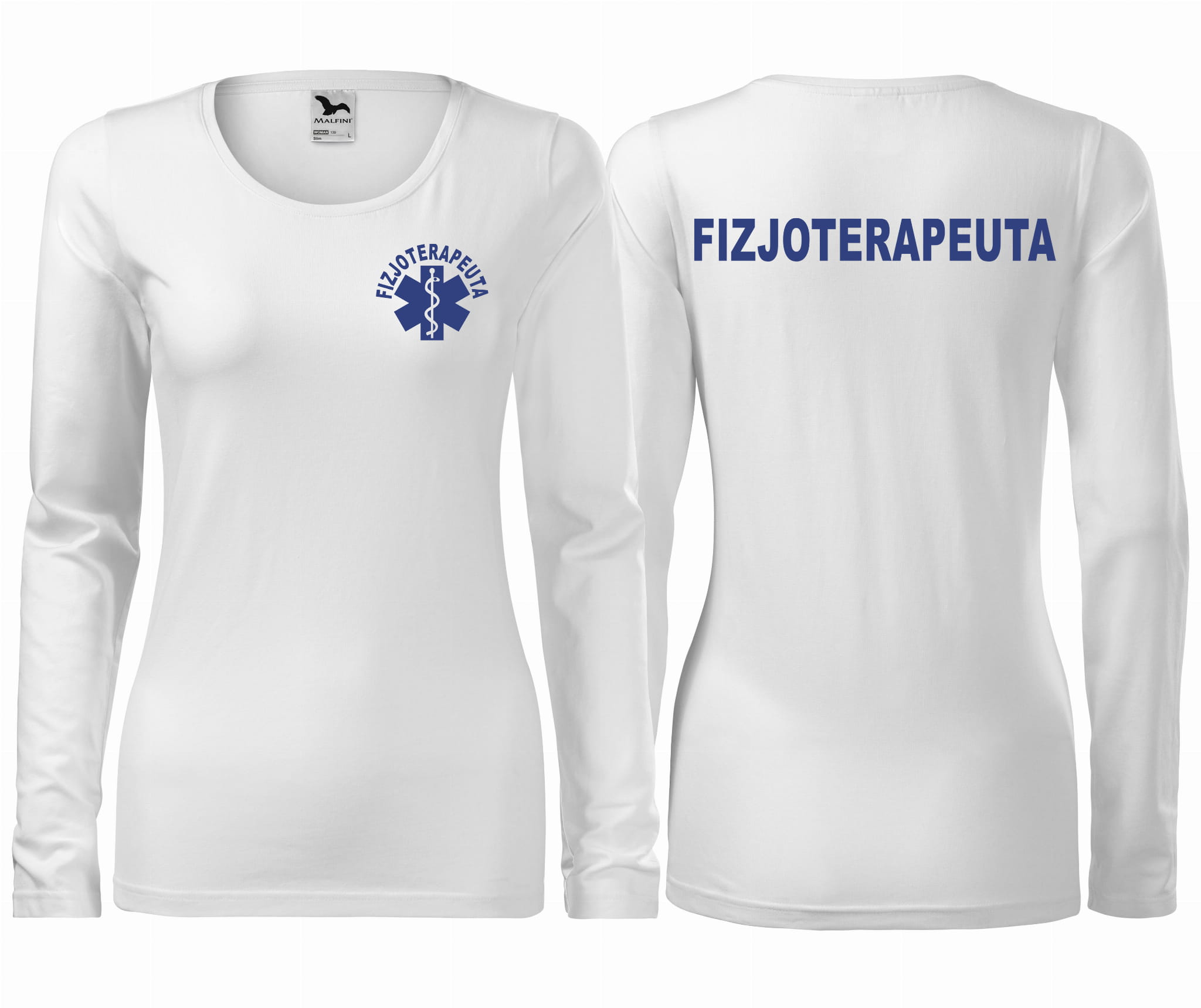 Koszulka damska z długim rękawem SLIM FIZJOTERAPEUTA nadruk PRZÓD I TYŁ