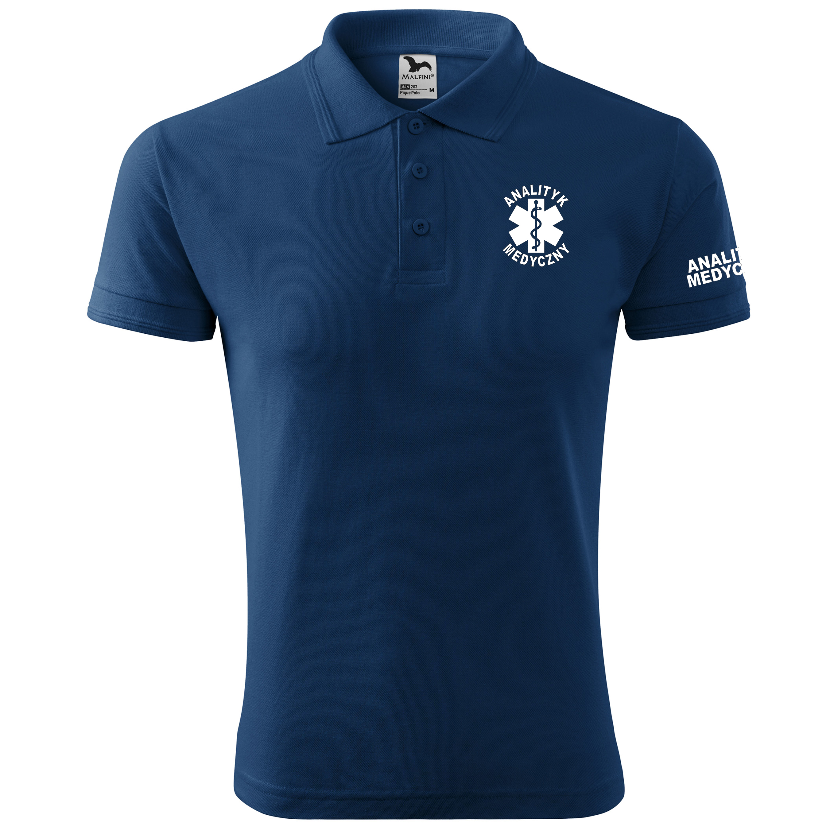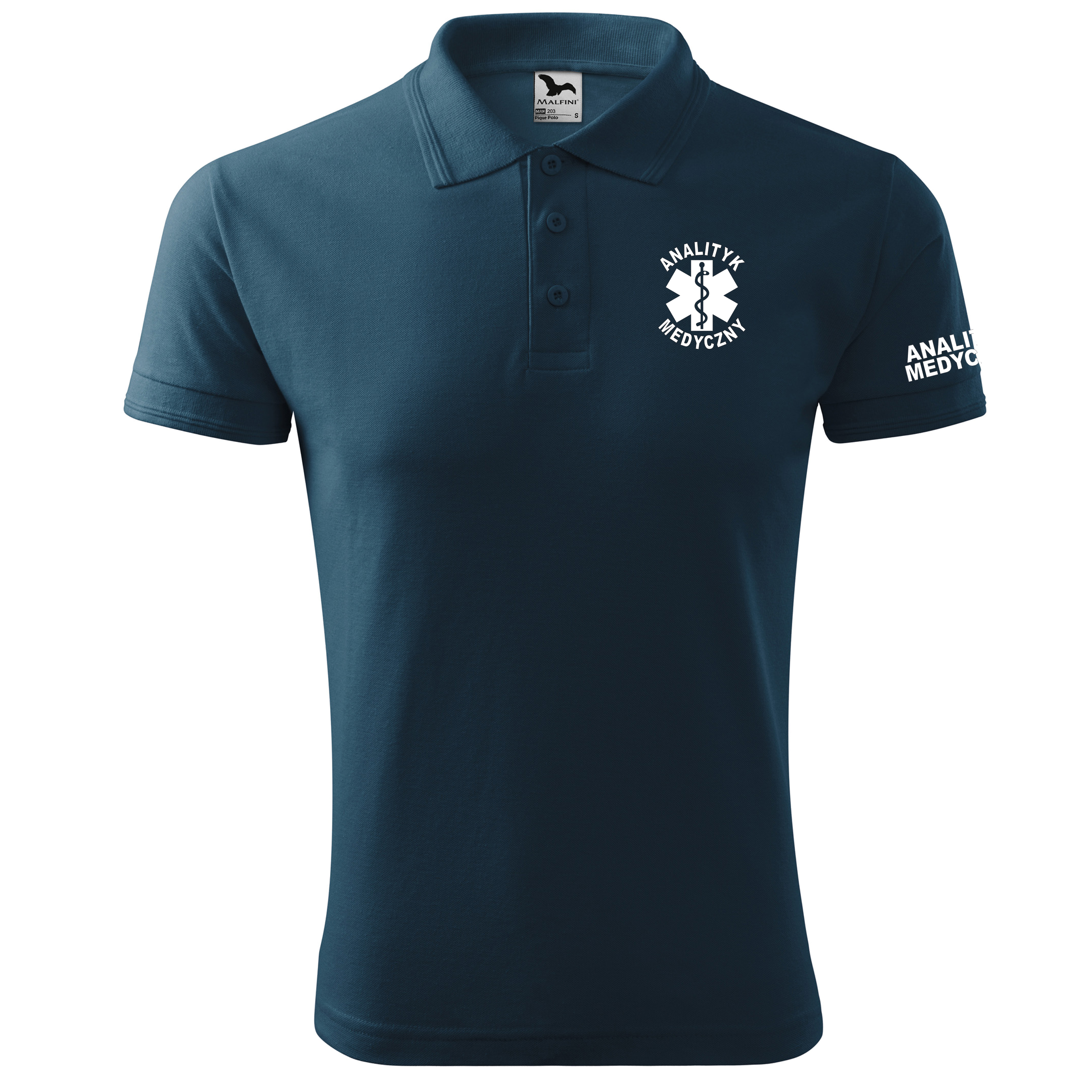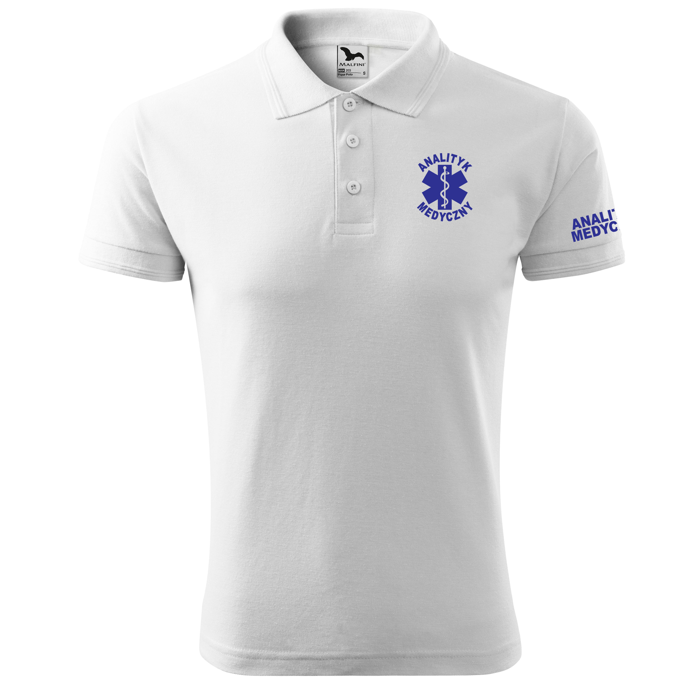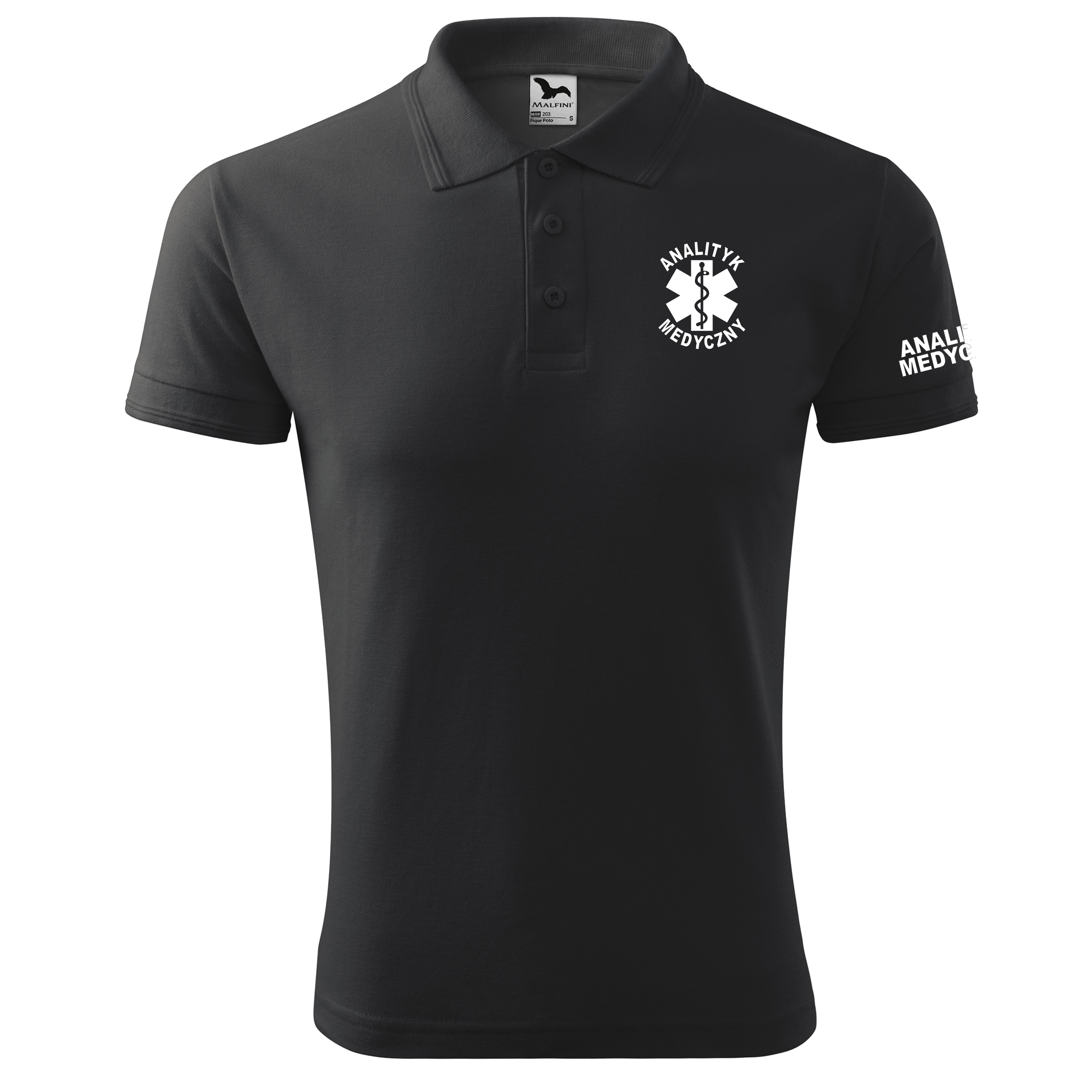 Koszulka męska POLO (203) ANALITYK MEDYCZNY nadruk PRZÓD i RĘKAWEK