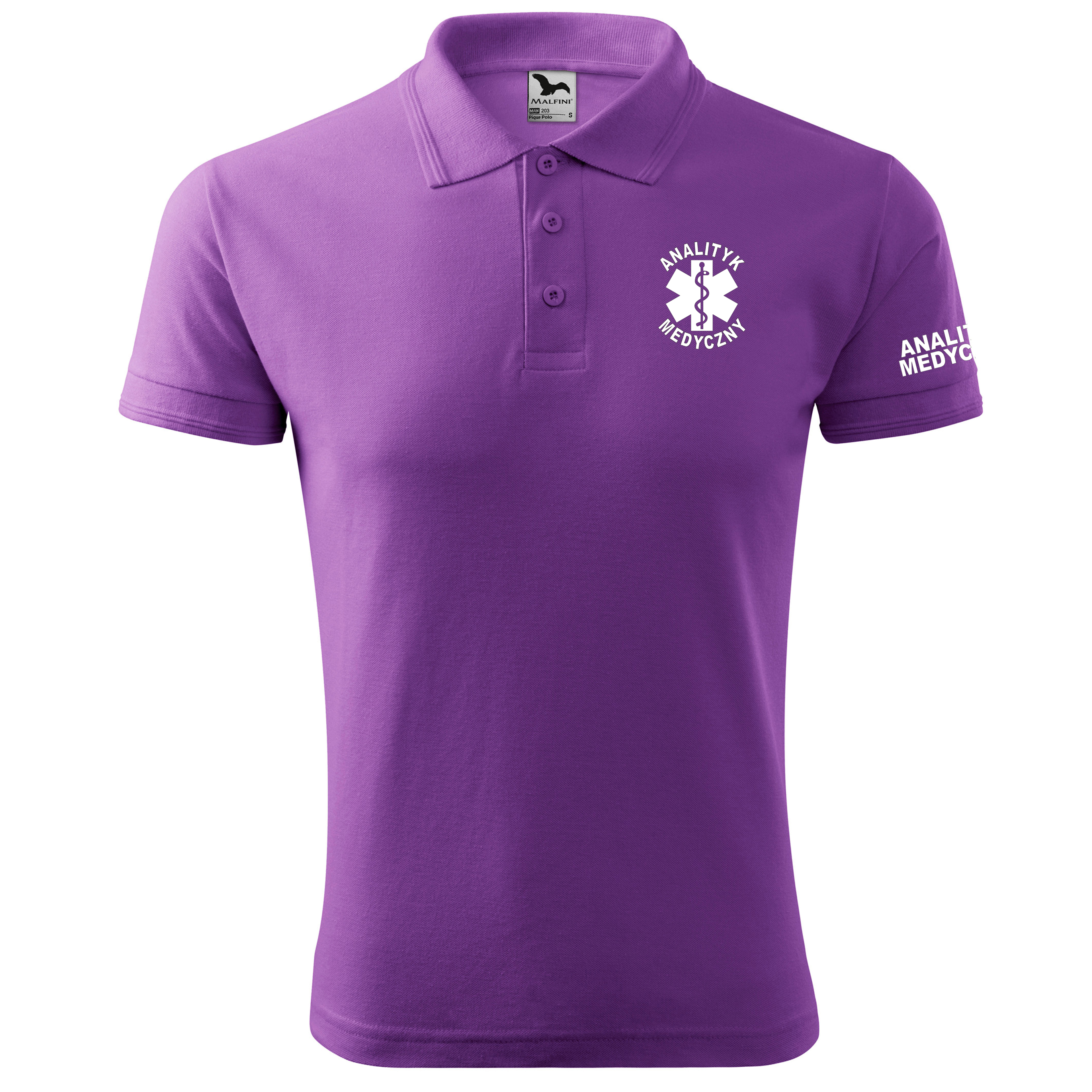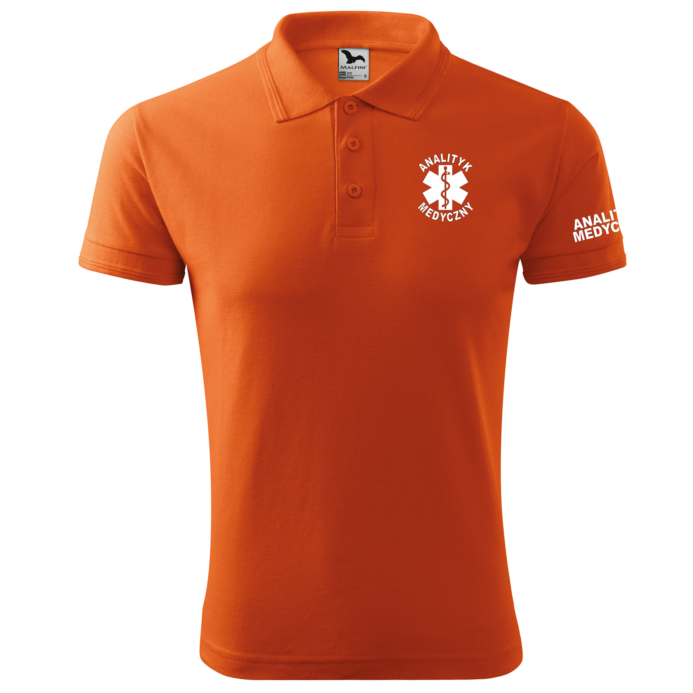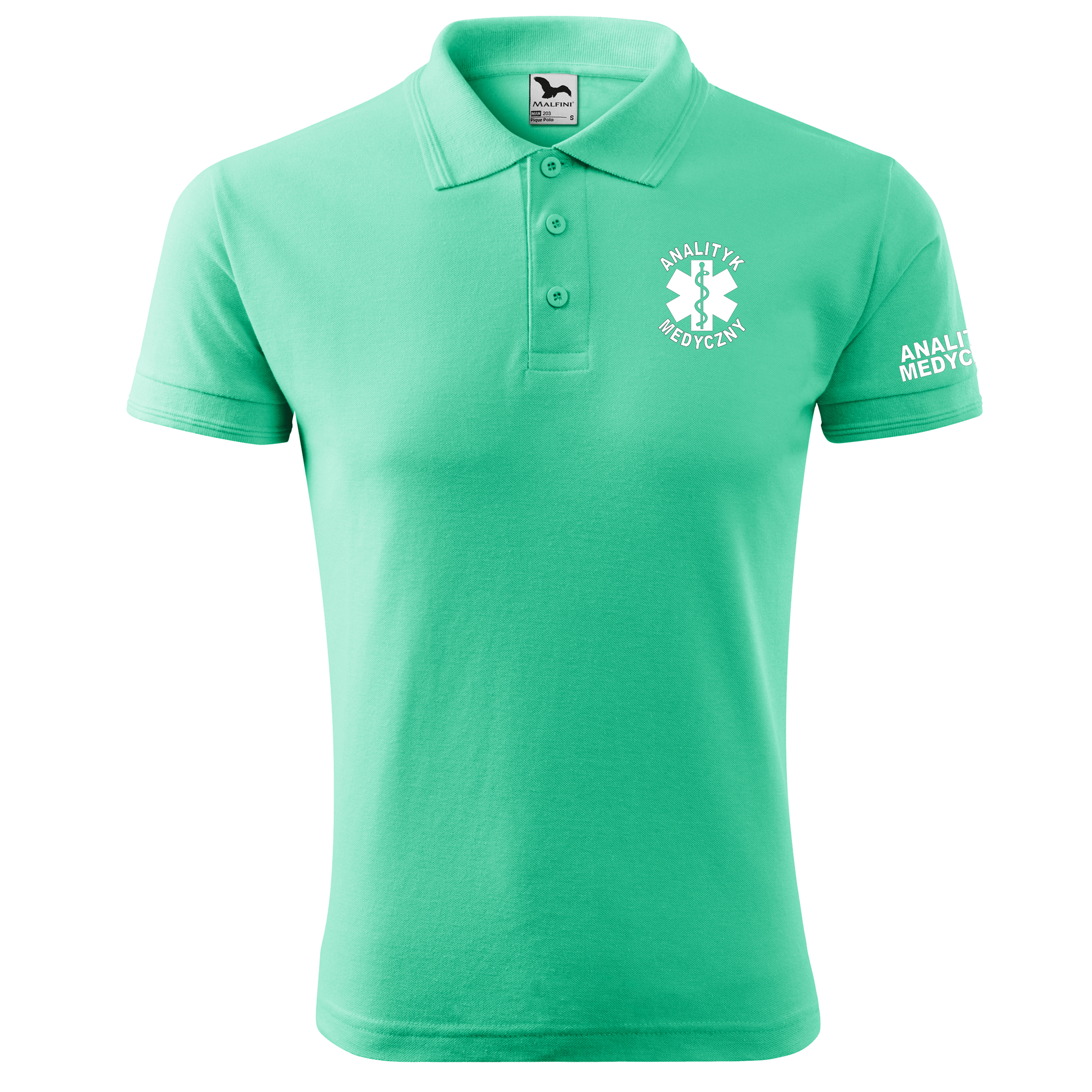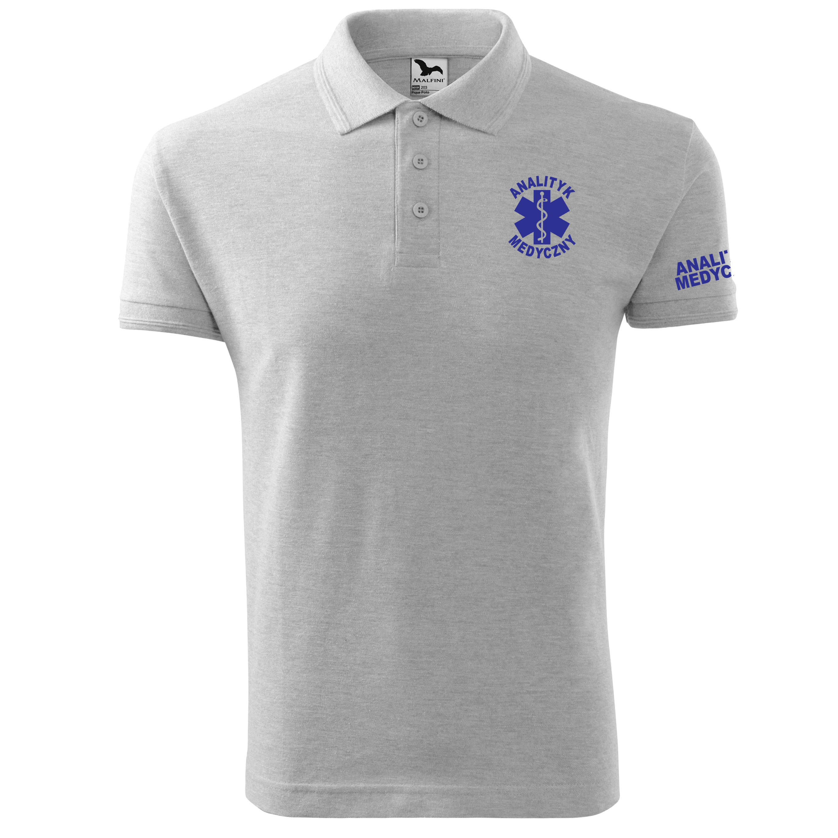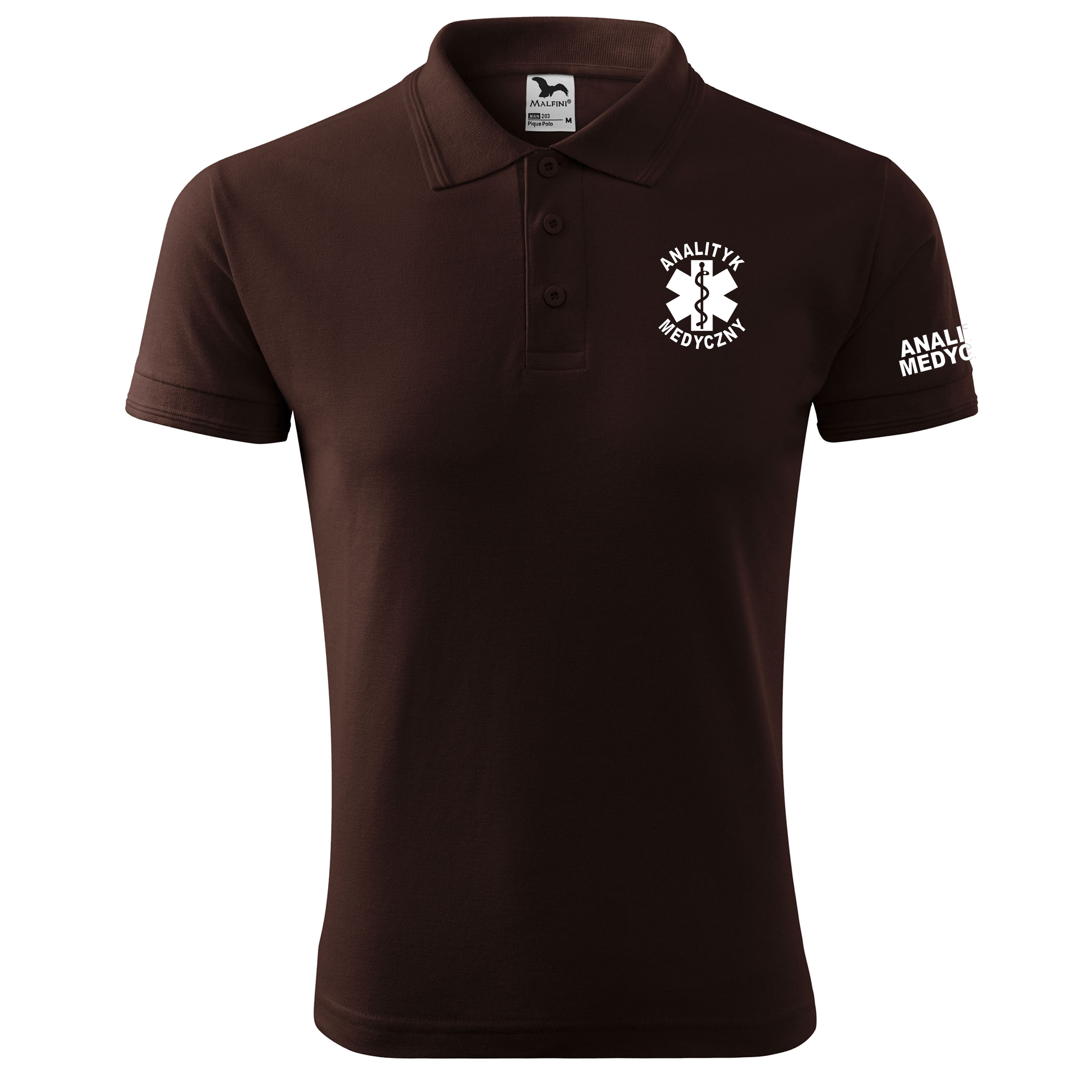 Koszulka męska POLO (203) ANALITYK MEDYCZNY nadruk PRZÓD i RĘKAWEK