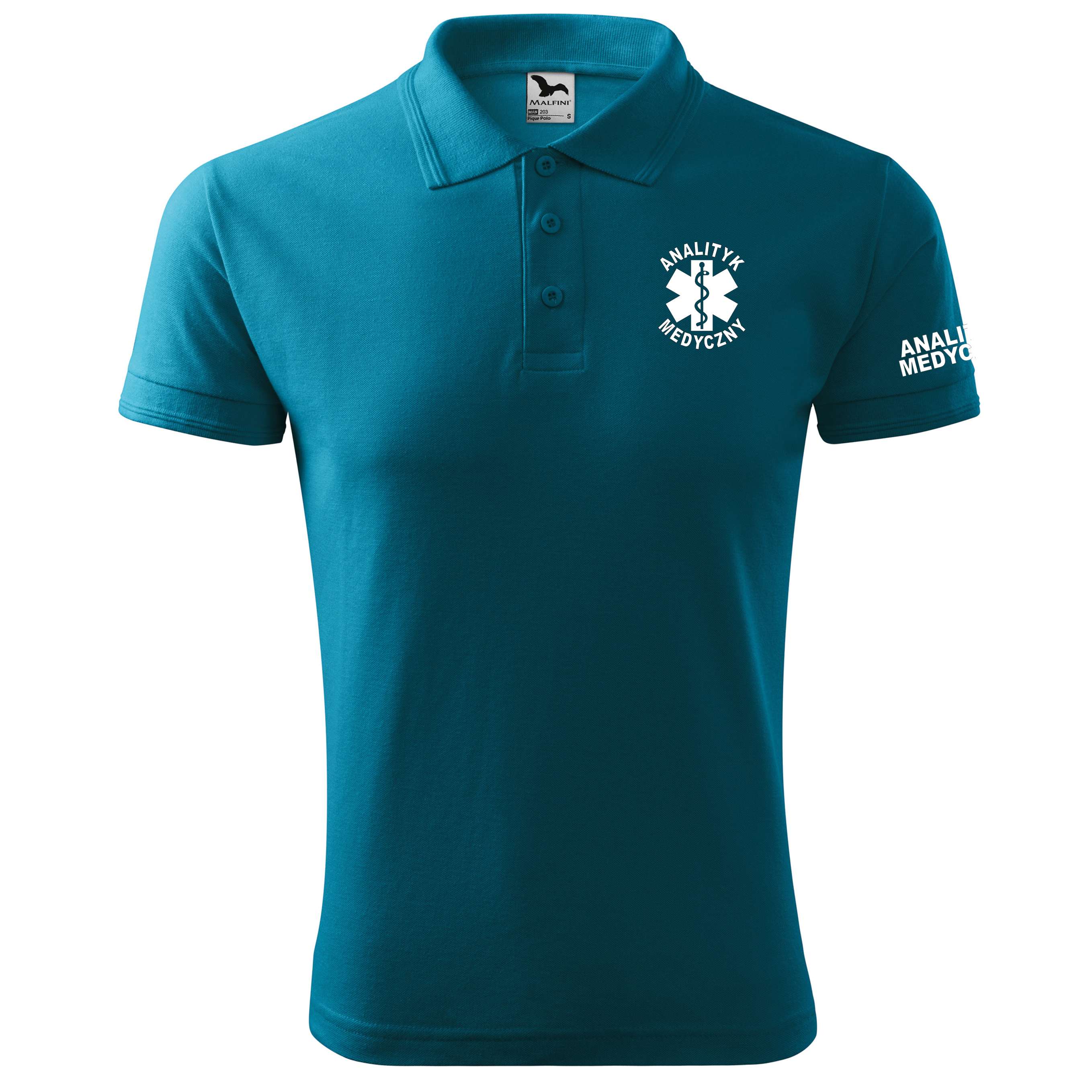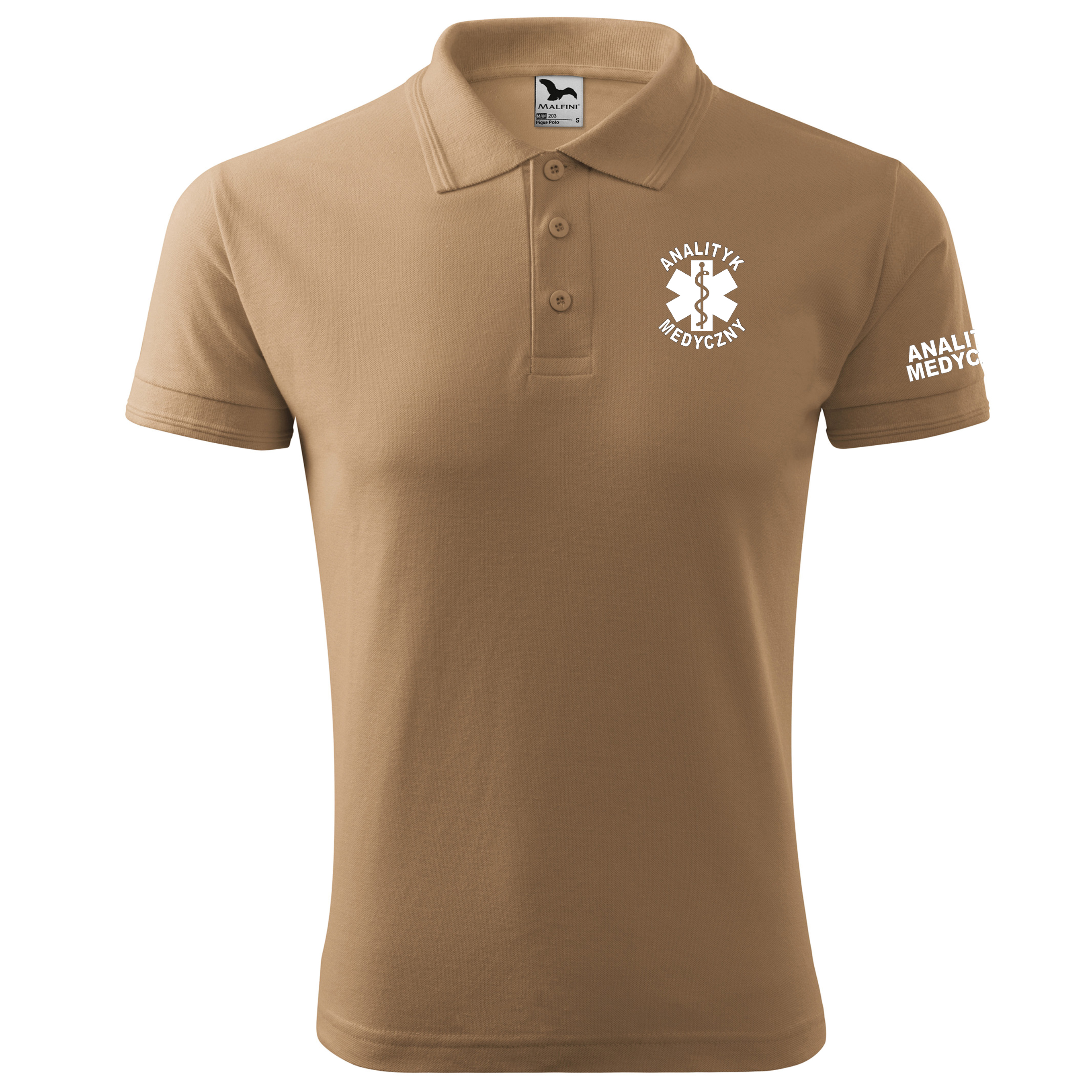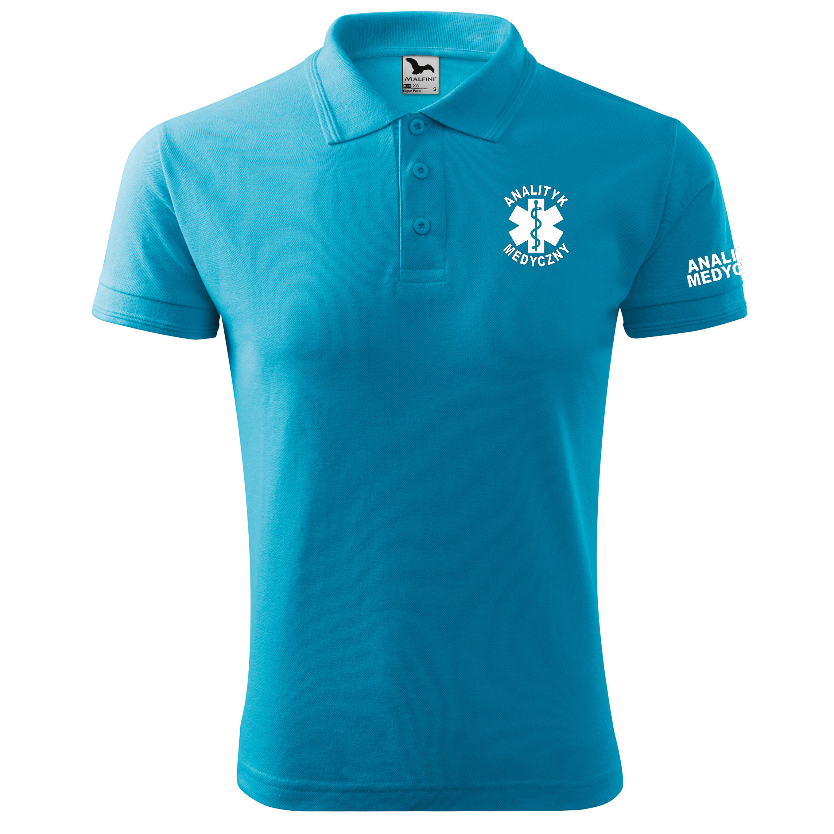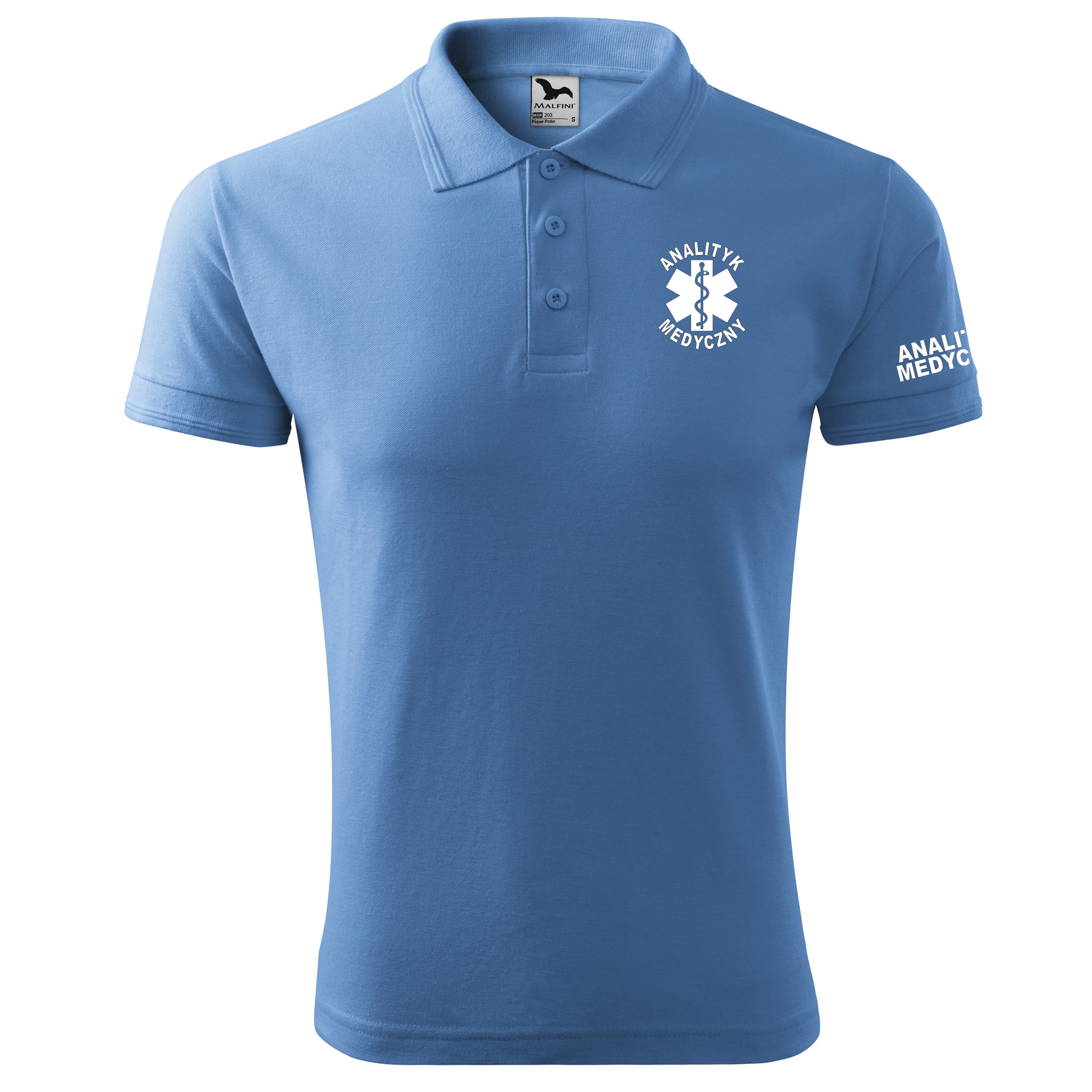 Koszulka męska POLO (203) ANALITYK MEDYCZNY nadruk PRZÓD i RĘKAWEK