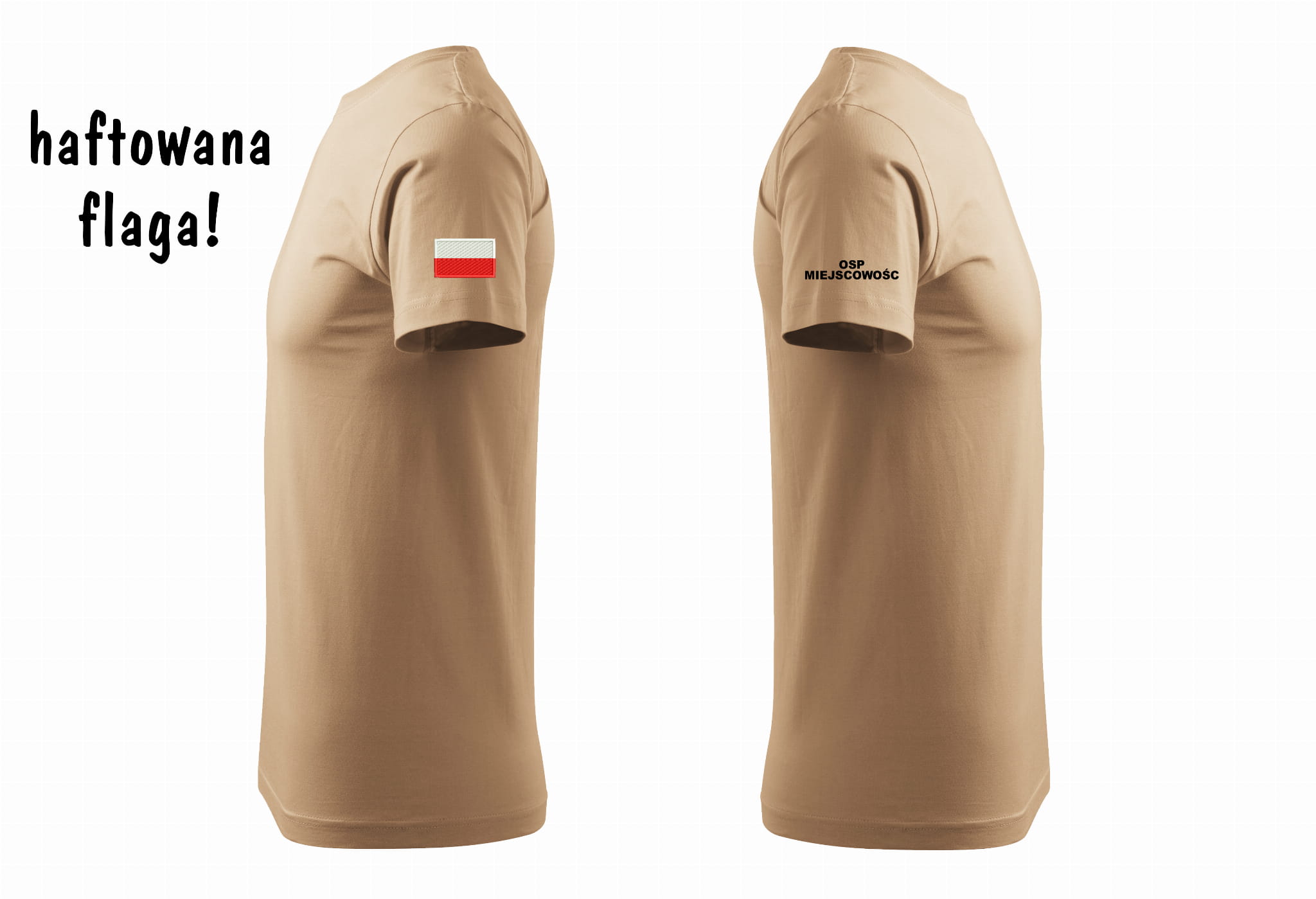 FLAGA POLSKI HAFTOWANA NA LEWYM RAMIENIU, NAZWA JEDNOSTKI / MIEJSCOWOŚCI NADRUK Z FOLII FLEX NA PRAWYM RAMIENIU
