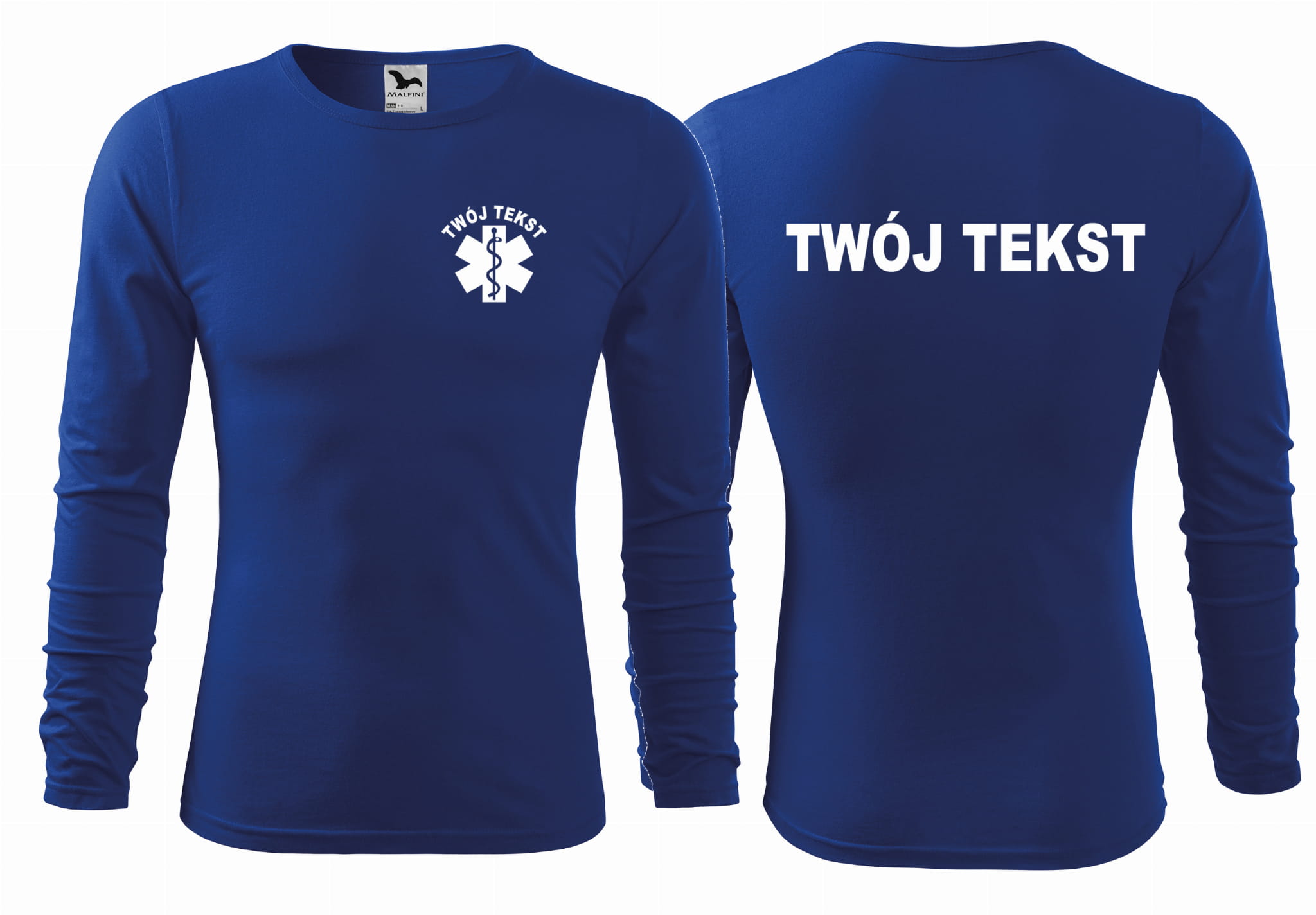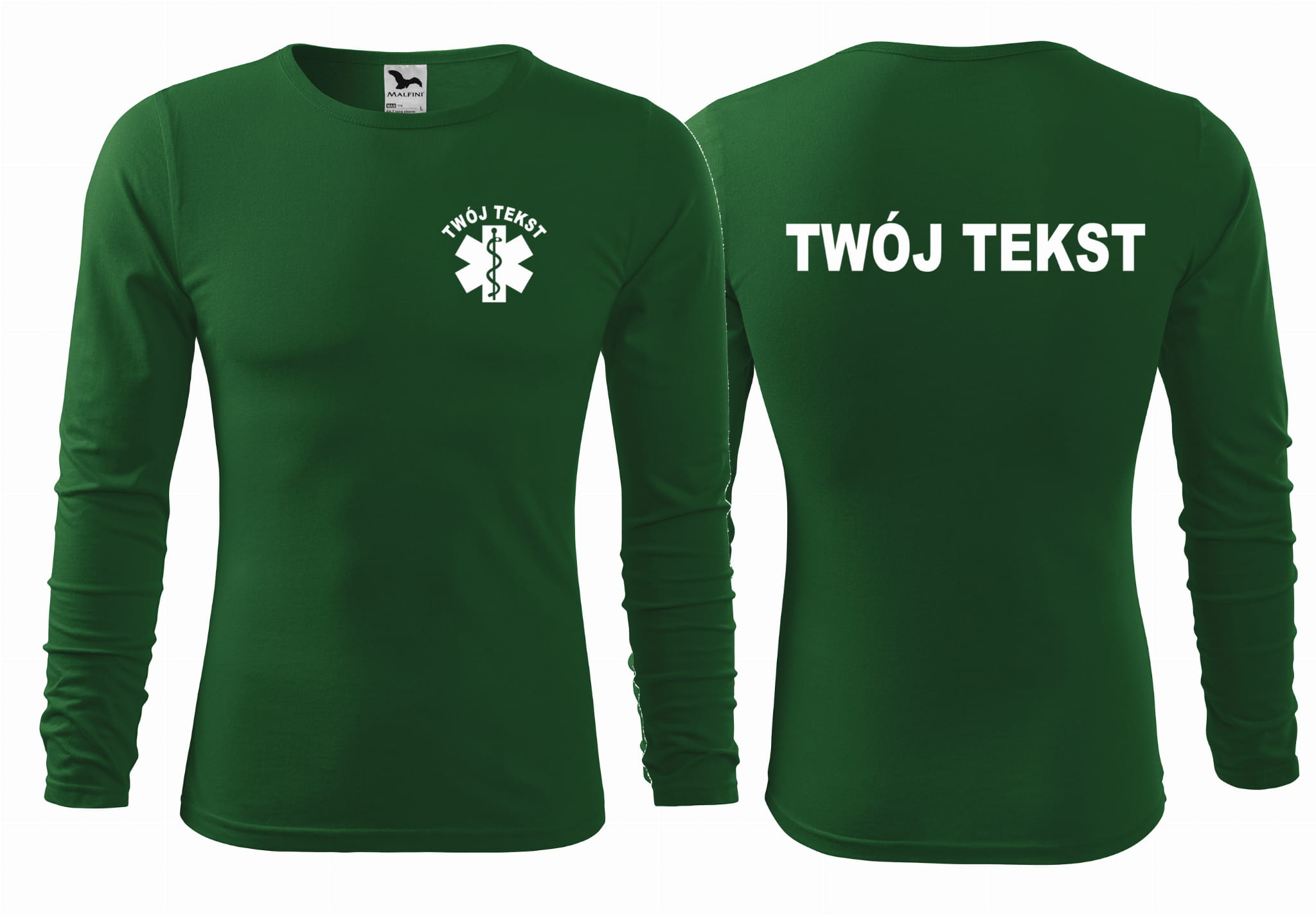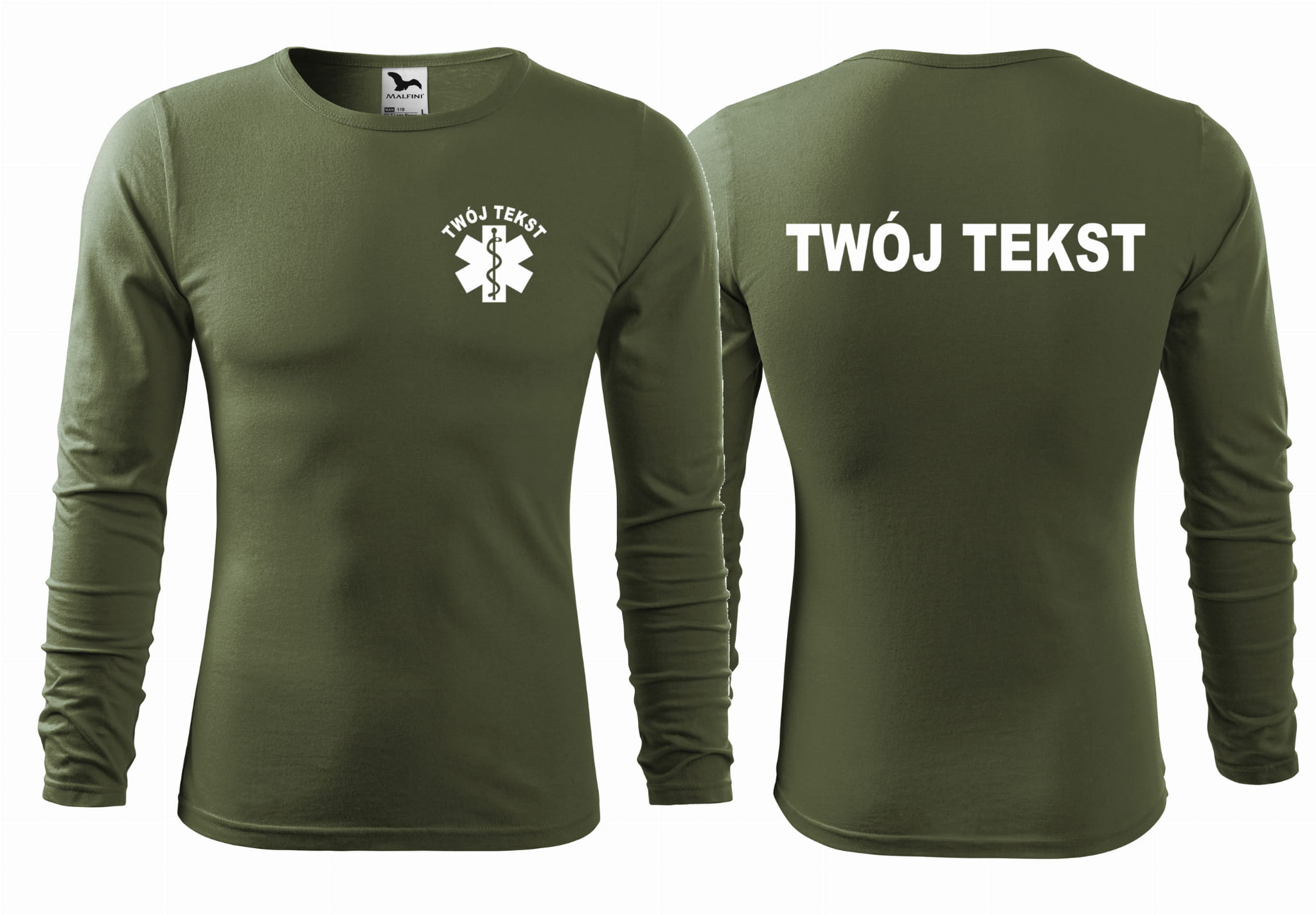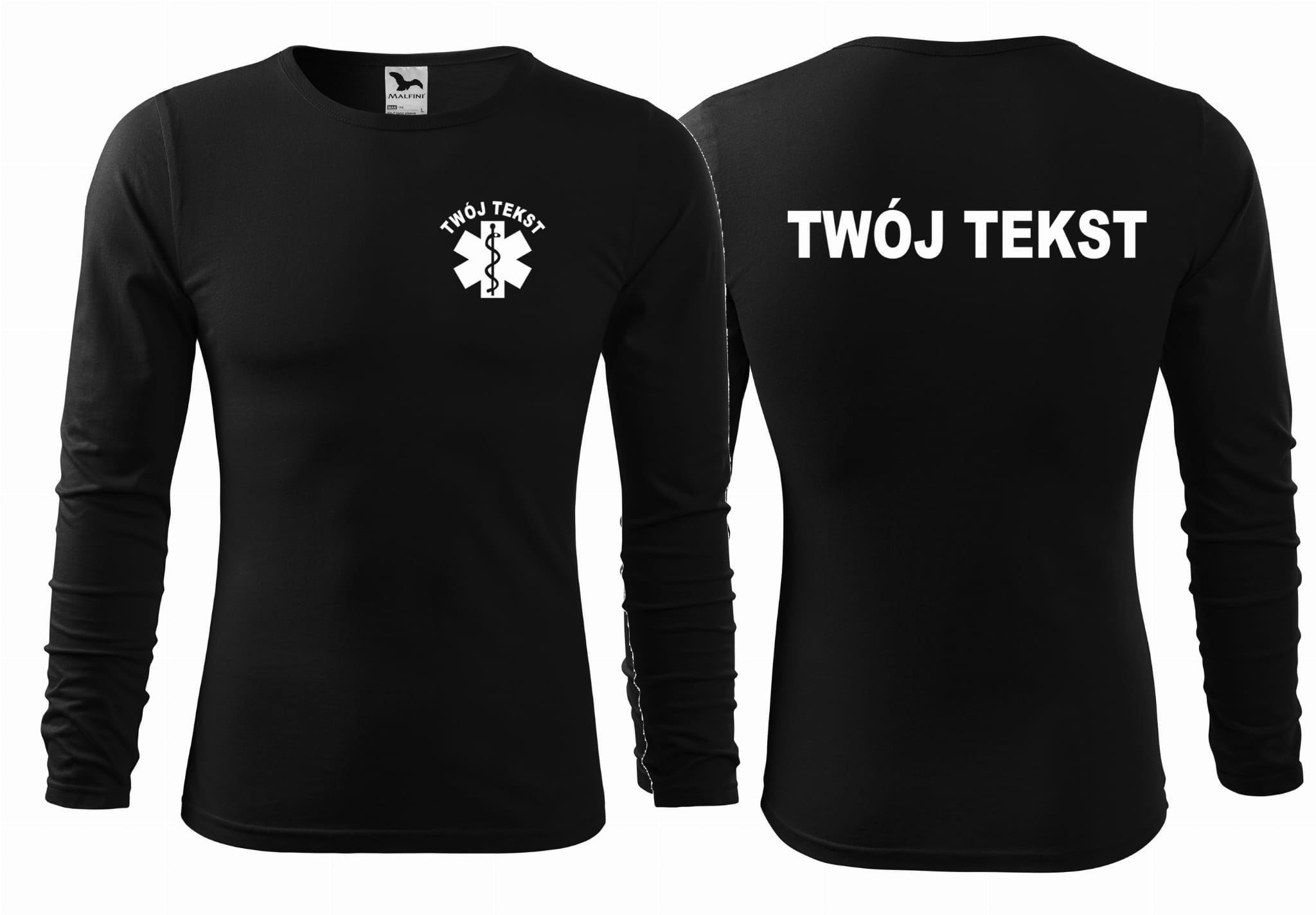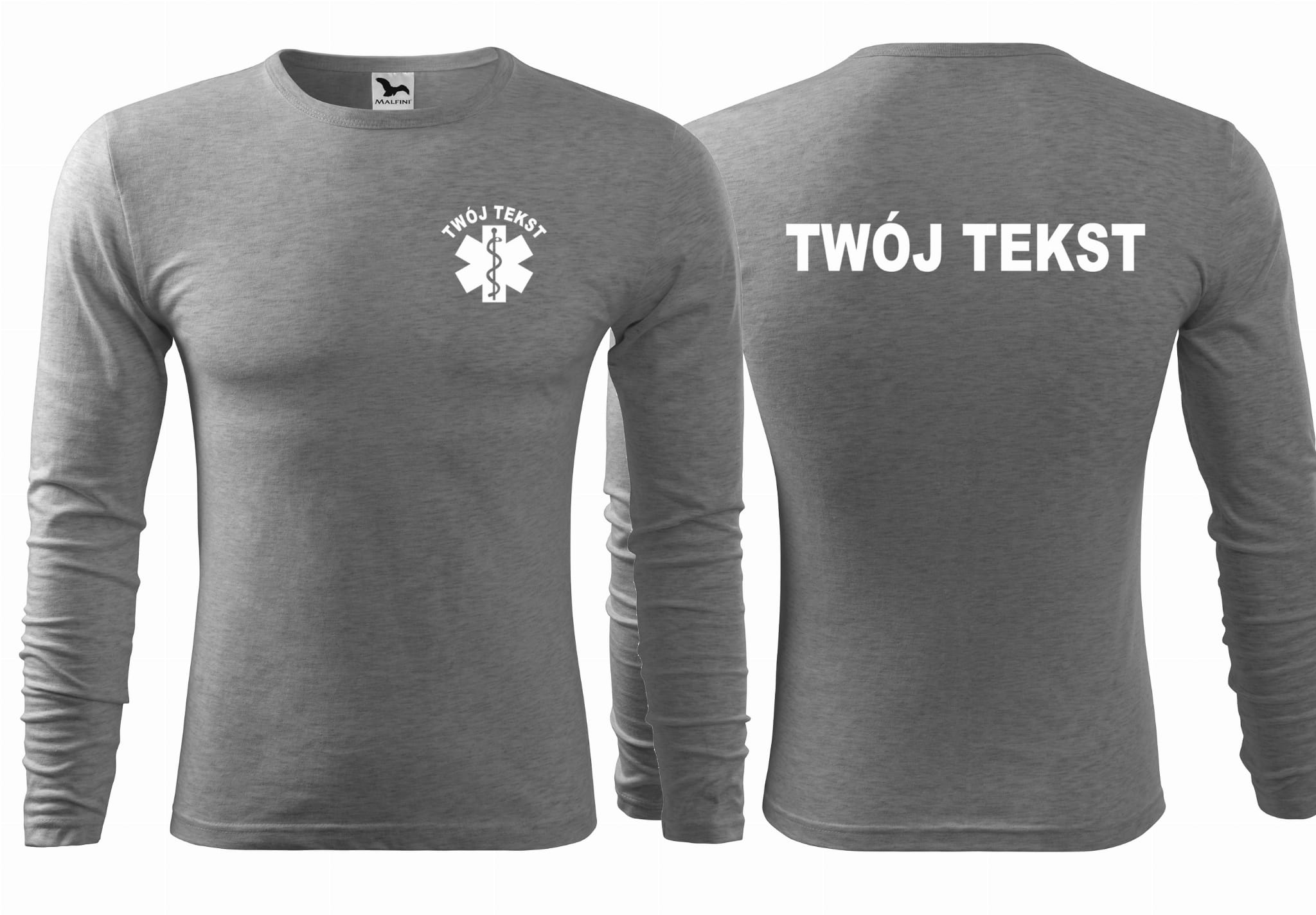 Koszulka męska z długim rękawem TWÓJ TEKST + ESKULAP nadruk PRZÓD I TYŁ