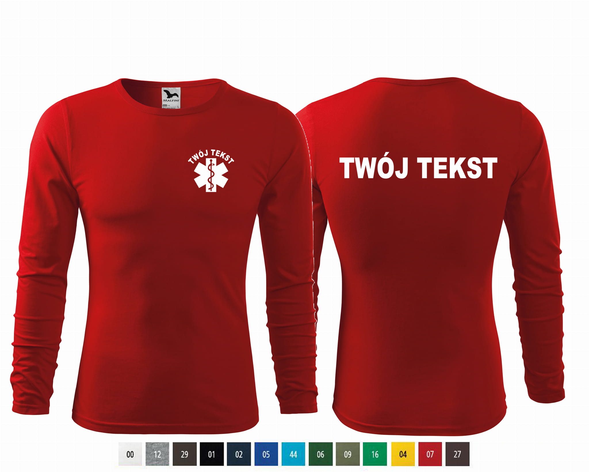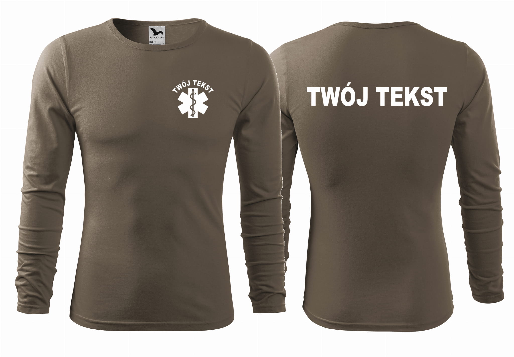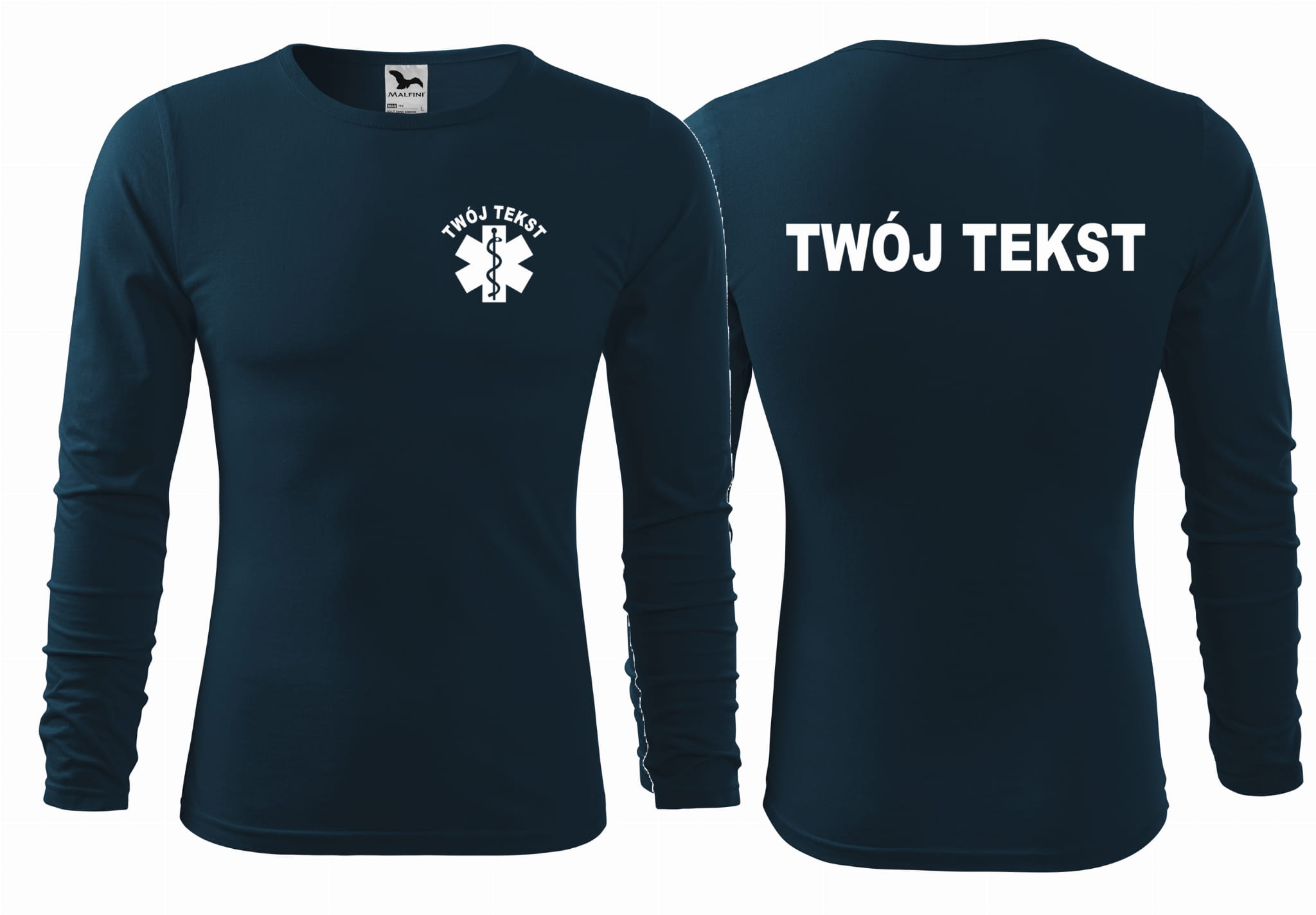 Koszulka męska z długim rękawem TWÓJ TEKST + ESKULAP