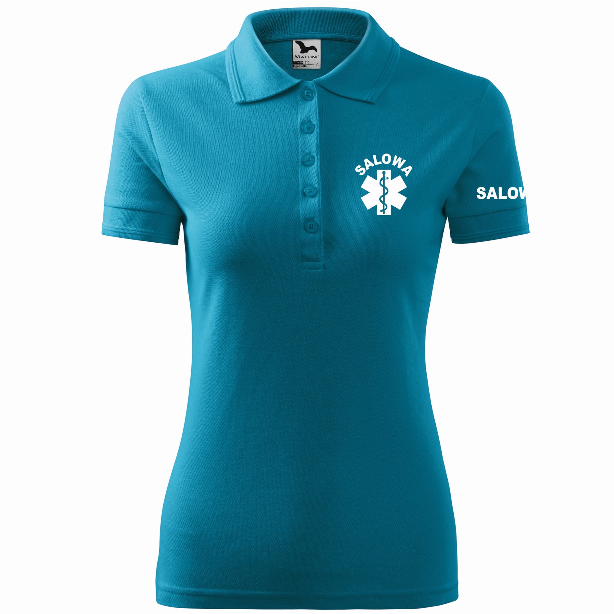 Koszulka polo damska z nadrukiem SALOWA + ESKULAP CIEMNY TURKUS (59)