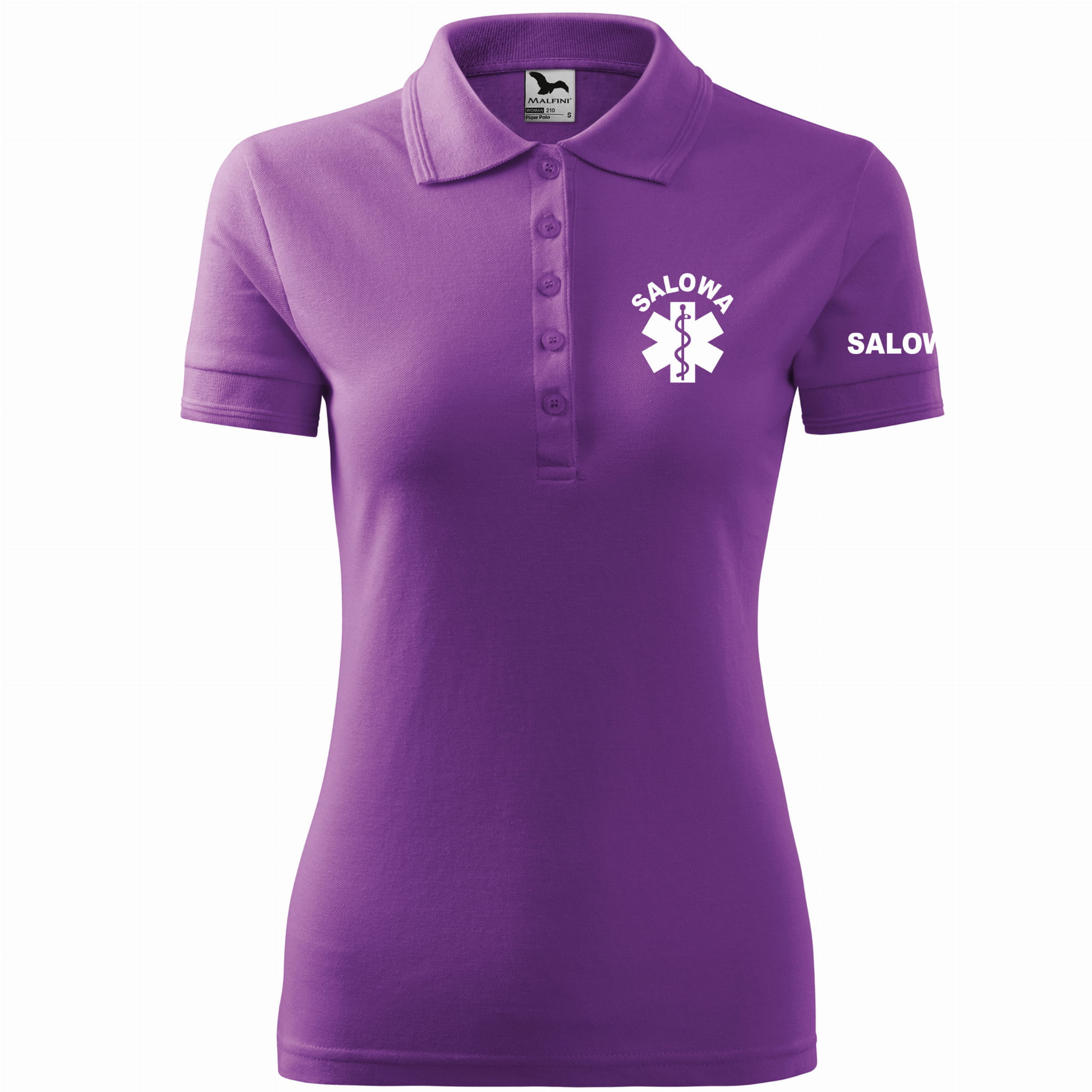 Koszulka polo damska z nadrukiem SALOWA + ESKULAP FIOLETOWA (64)