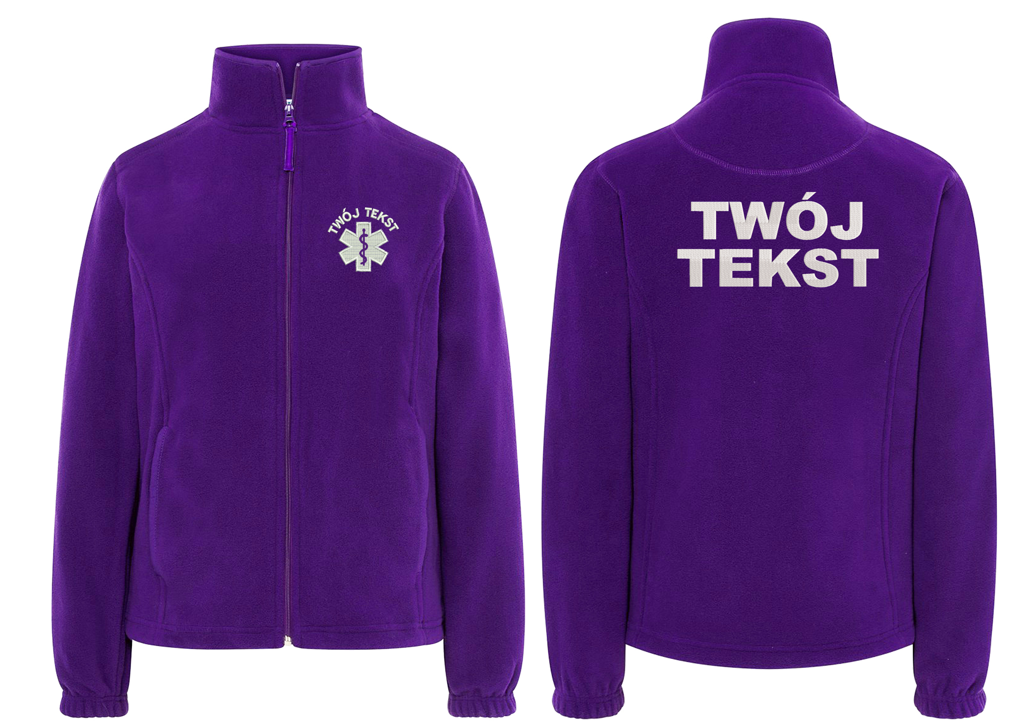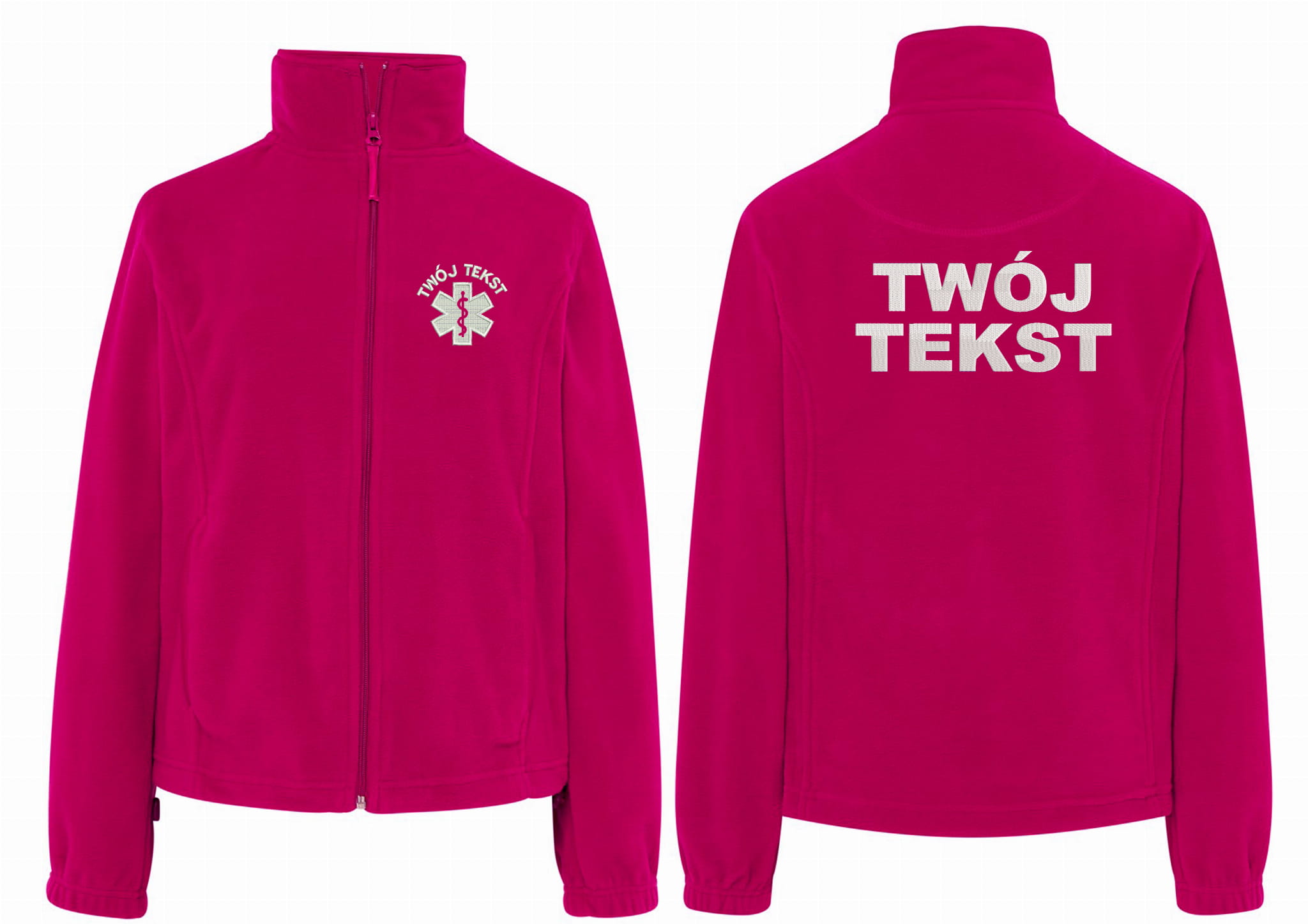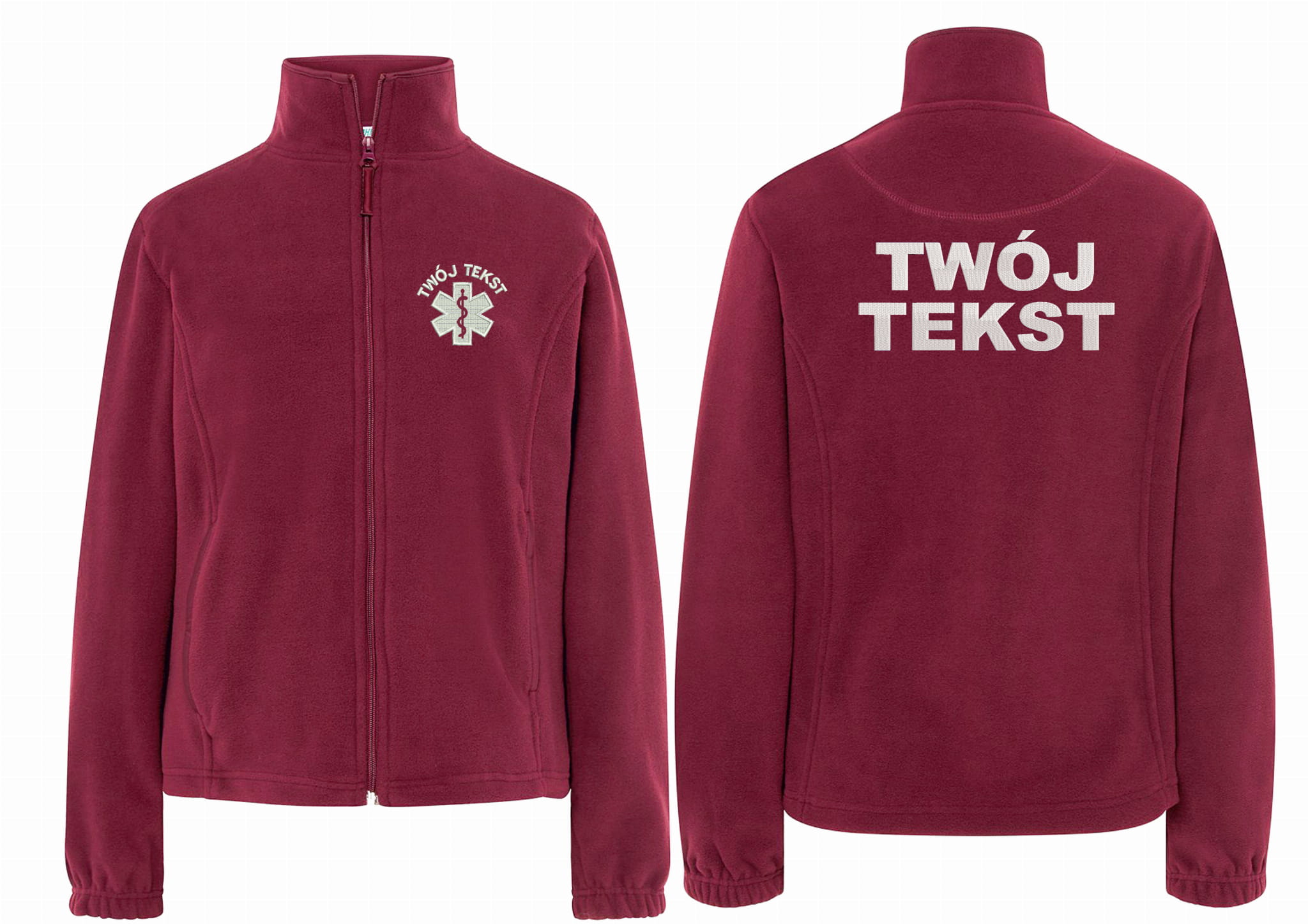 - trwałe znakowanie haftem komputerowy, przód polaru: tekst + znak medyczny, tył polaru: tekst (tekst umieszczamy w 1-3 linijkach, im dłuższy tekst tym mniejsza czcionka)