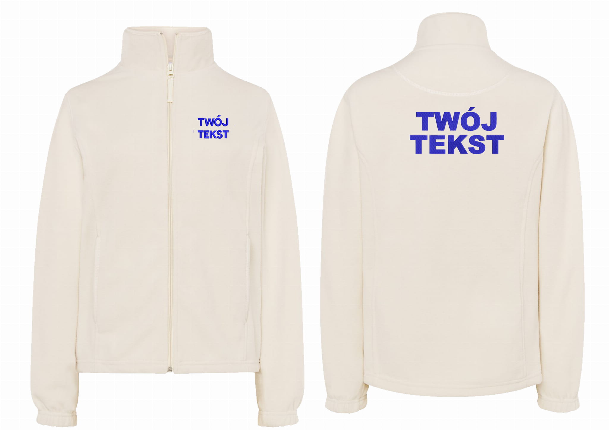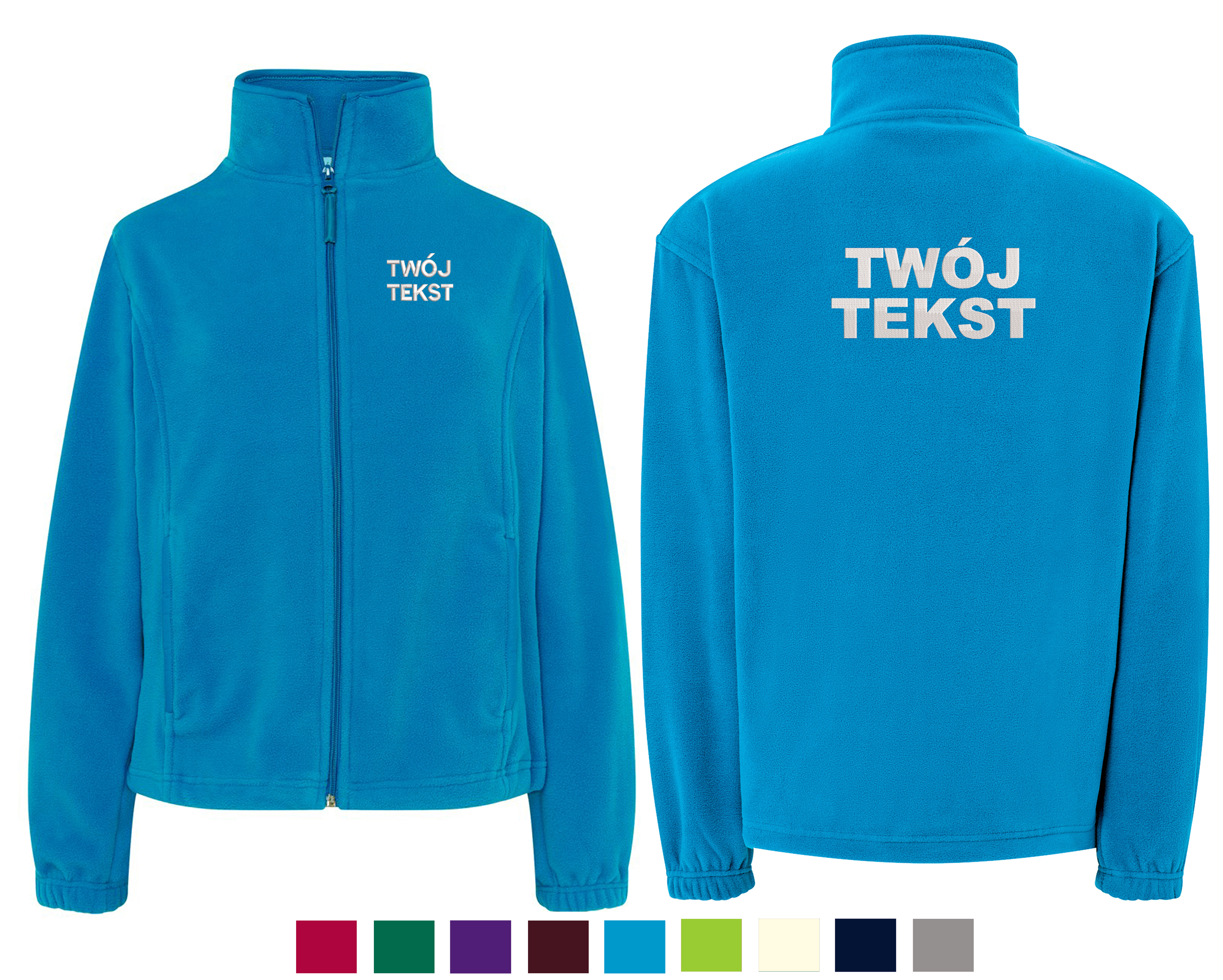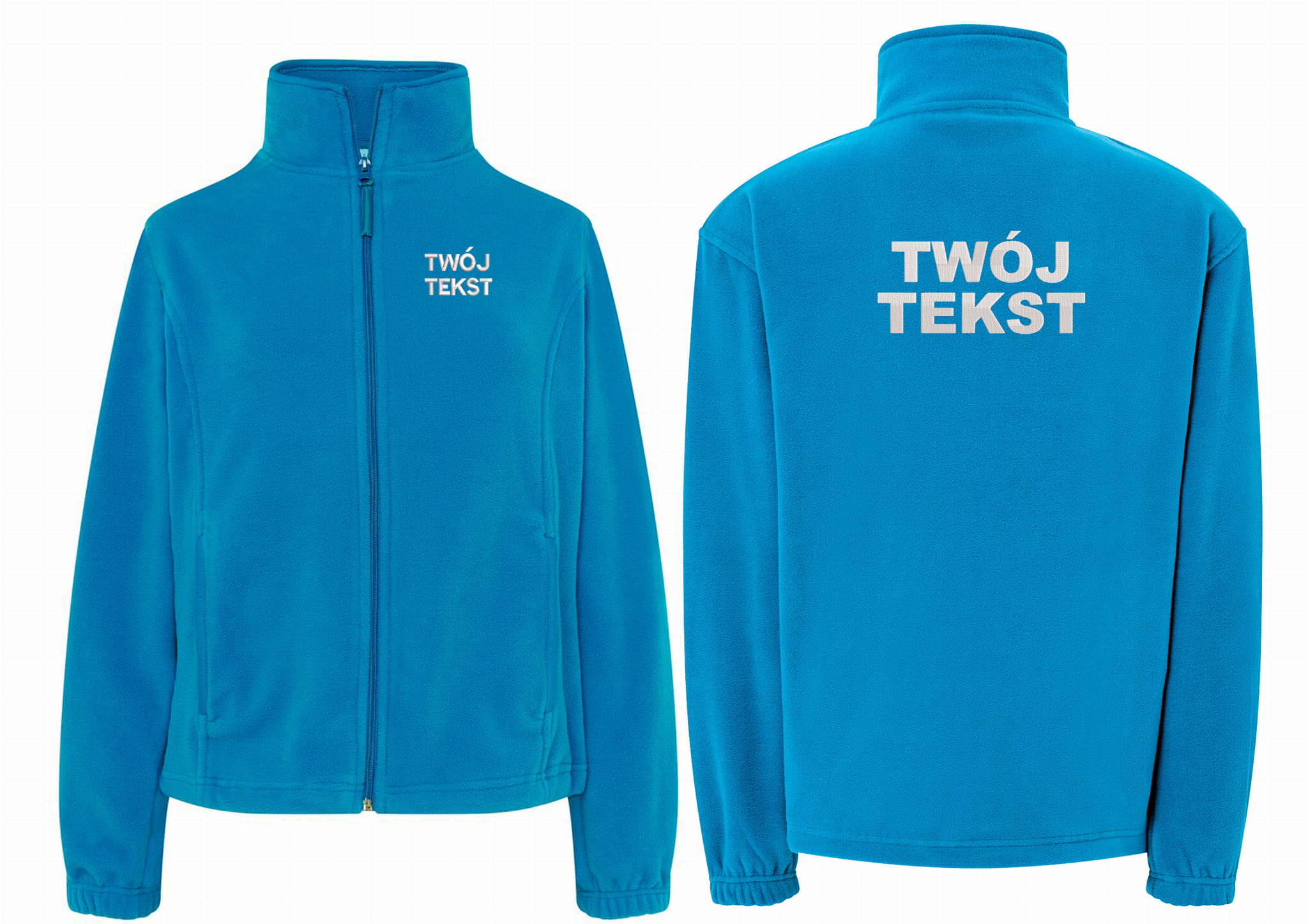 - trwałe znakowanie haftem komputerowy, przód polaru: tekst , tył polaru: tekst (tekst umieszczamy w 1-3 linijkach, im dłuższy tekst tym mniejsza czcionka)