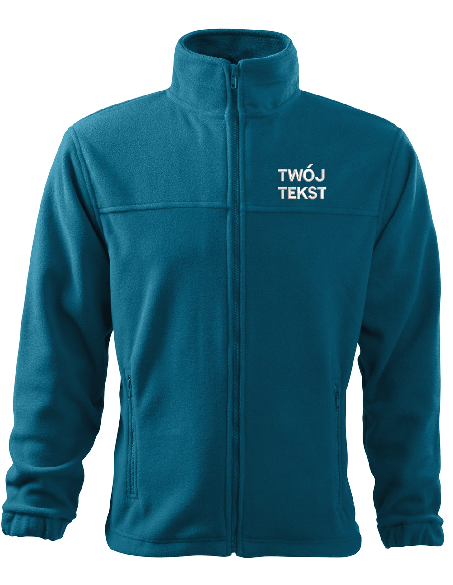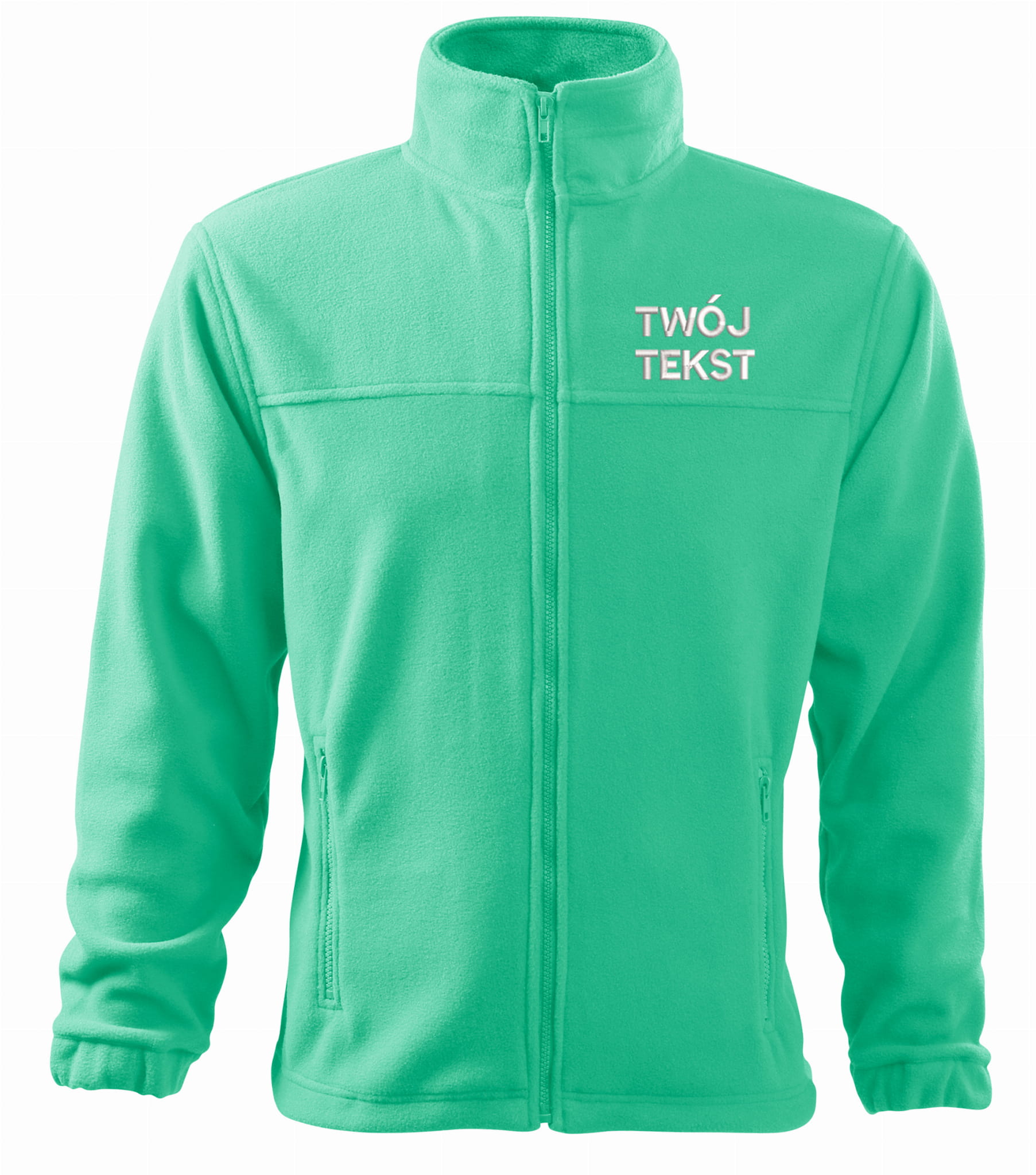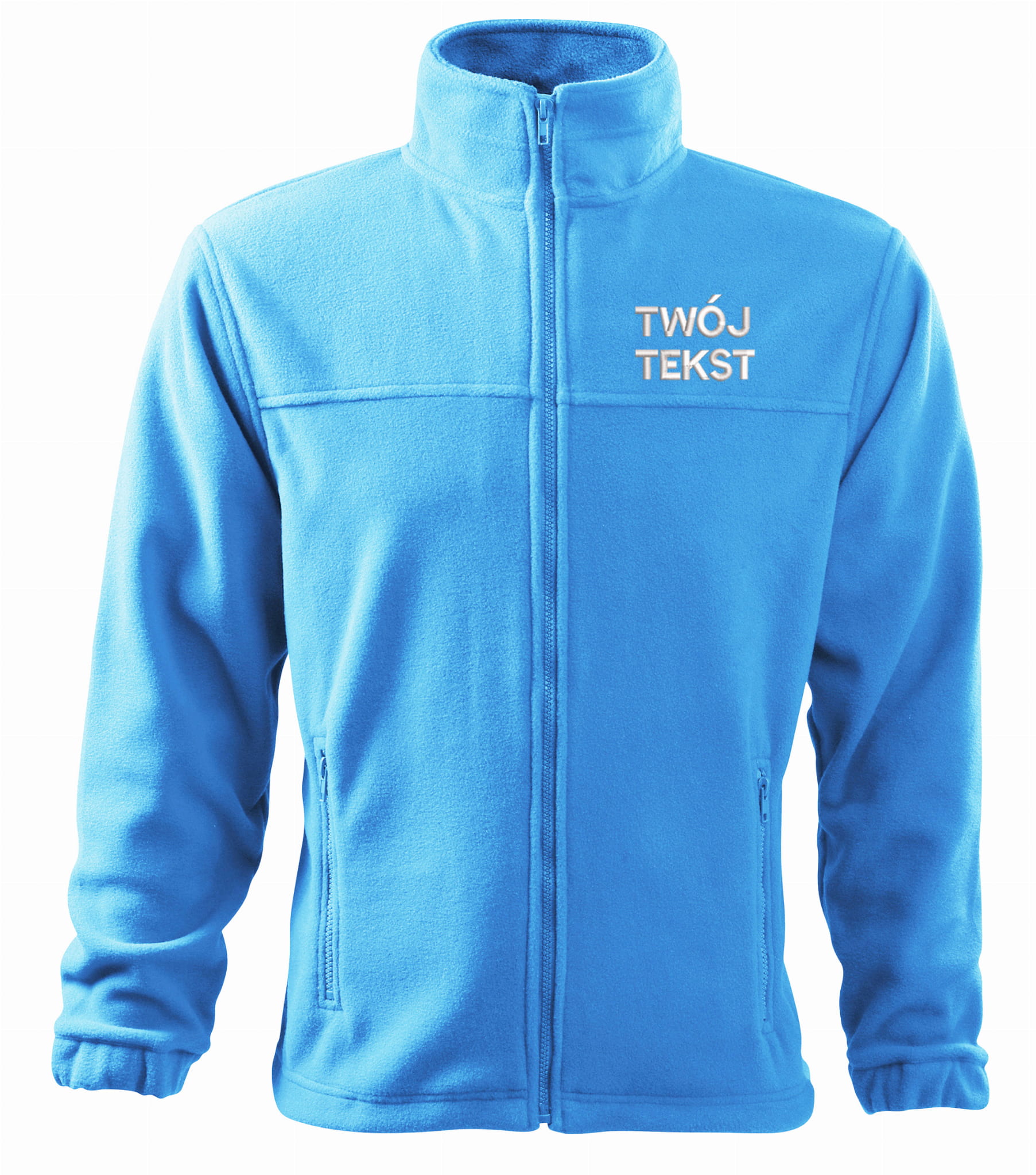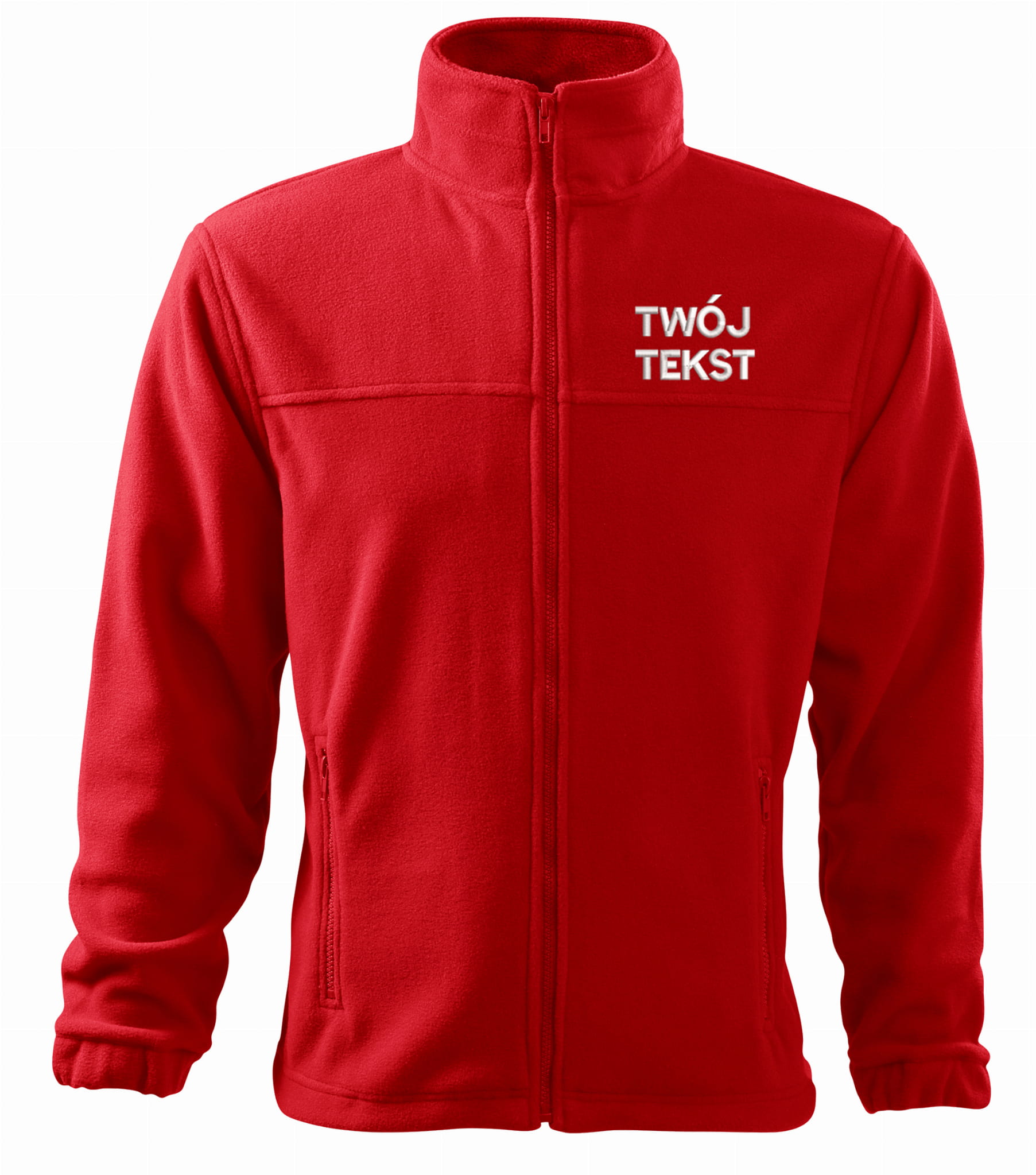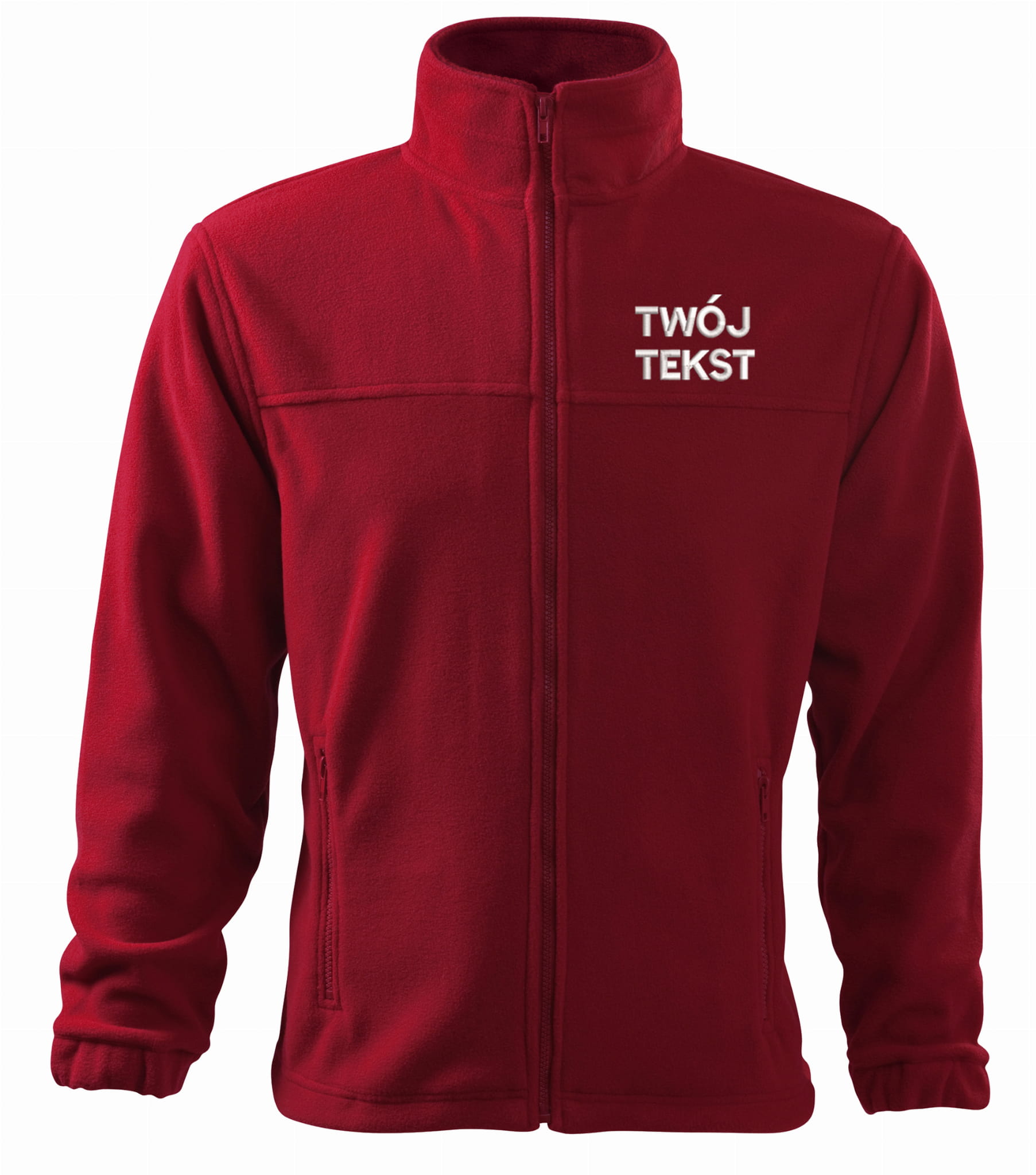 - trwałe znakowanie haftem komputerowy z przodu polaru:tekst