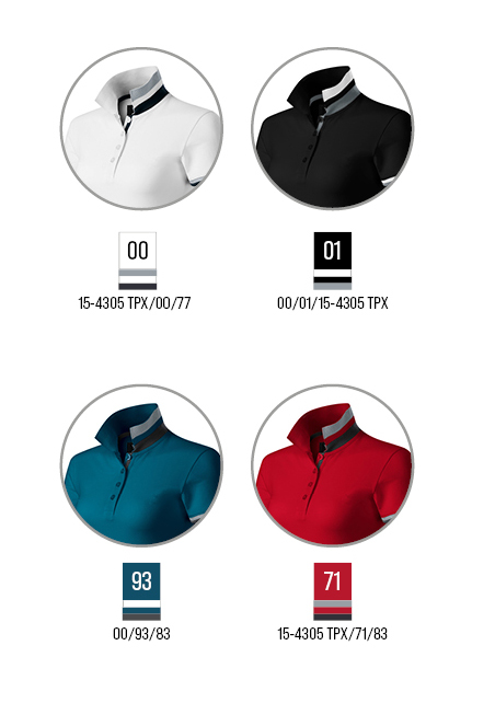 - dolna część kołnierzyka i wykończenie rękawków kontrastowymi paskami