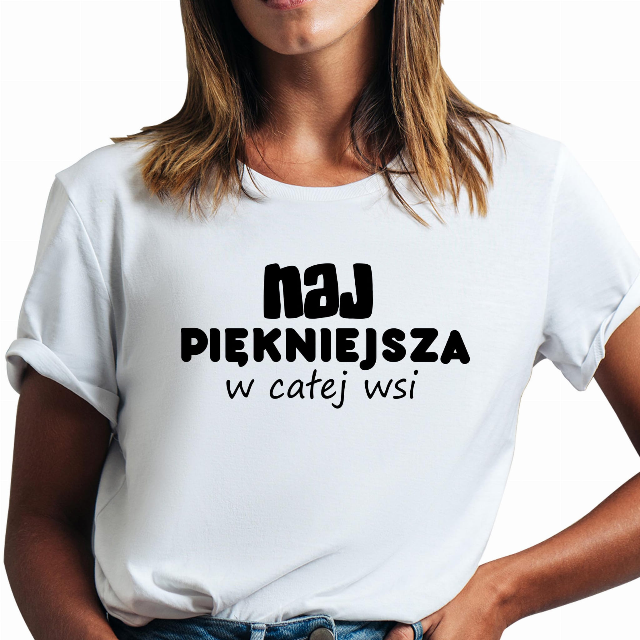 T-SHIRT KOSZULKA Z NADRUKIEM NAJPIĘKNIESZA W CAŁEJ WSI PREZENT