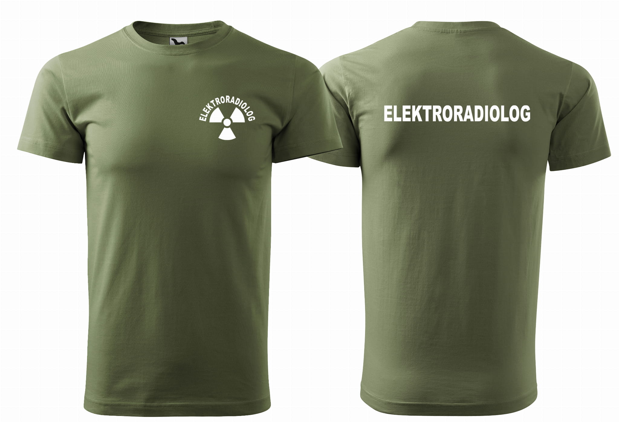 WYPRZEDAŻ 1 SZT ROZMIAR L Koszulka męska BASIC ELEKTRORADIOLOG nadruk PRZÓD I TYŁ KHAKI