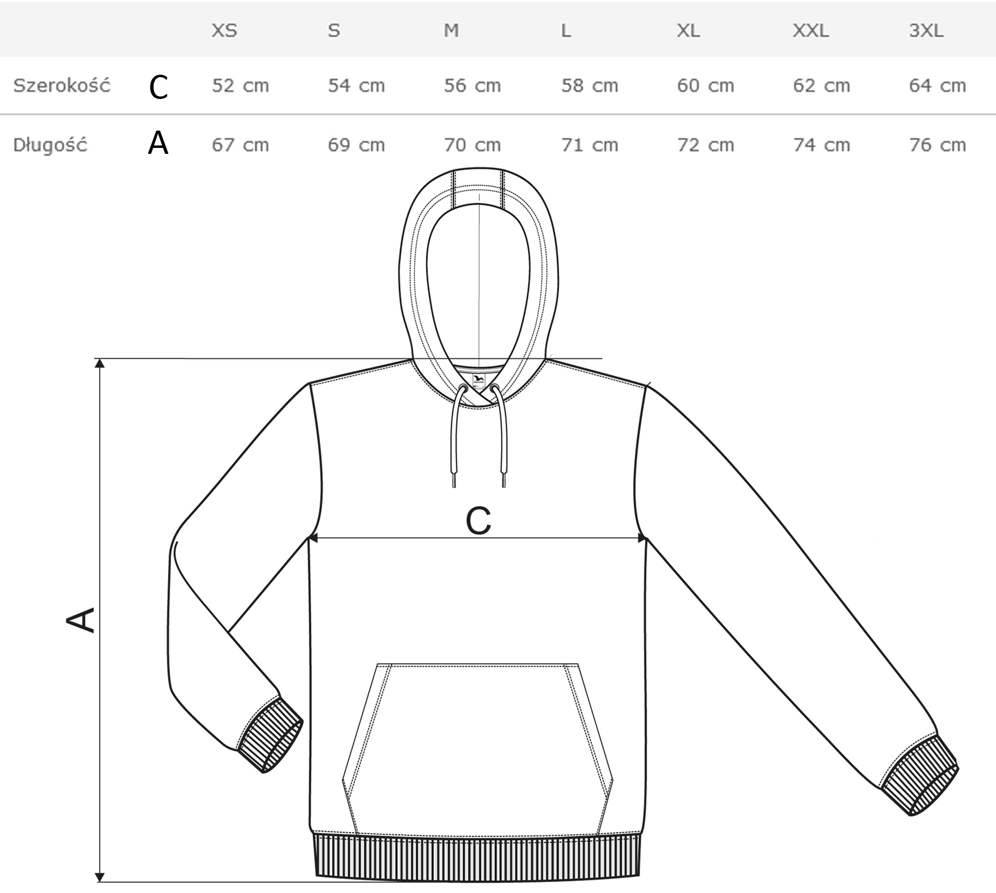 - trwałe znakowanie wykonane folią flex z PRZODU I TYŁU BLUZY