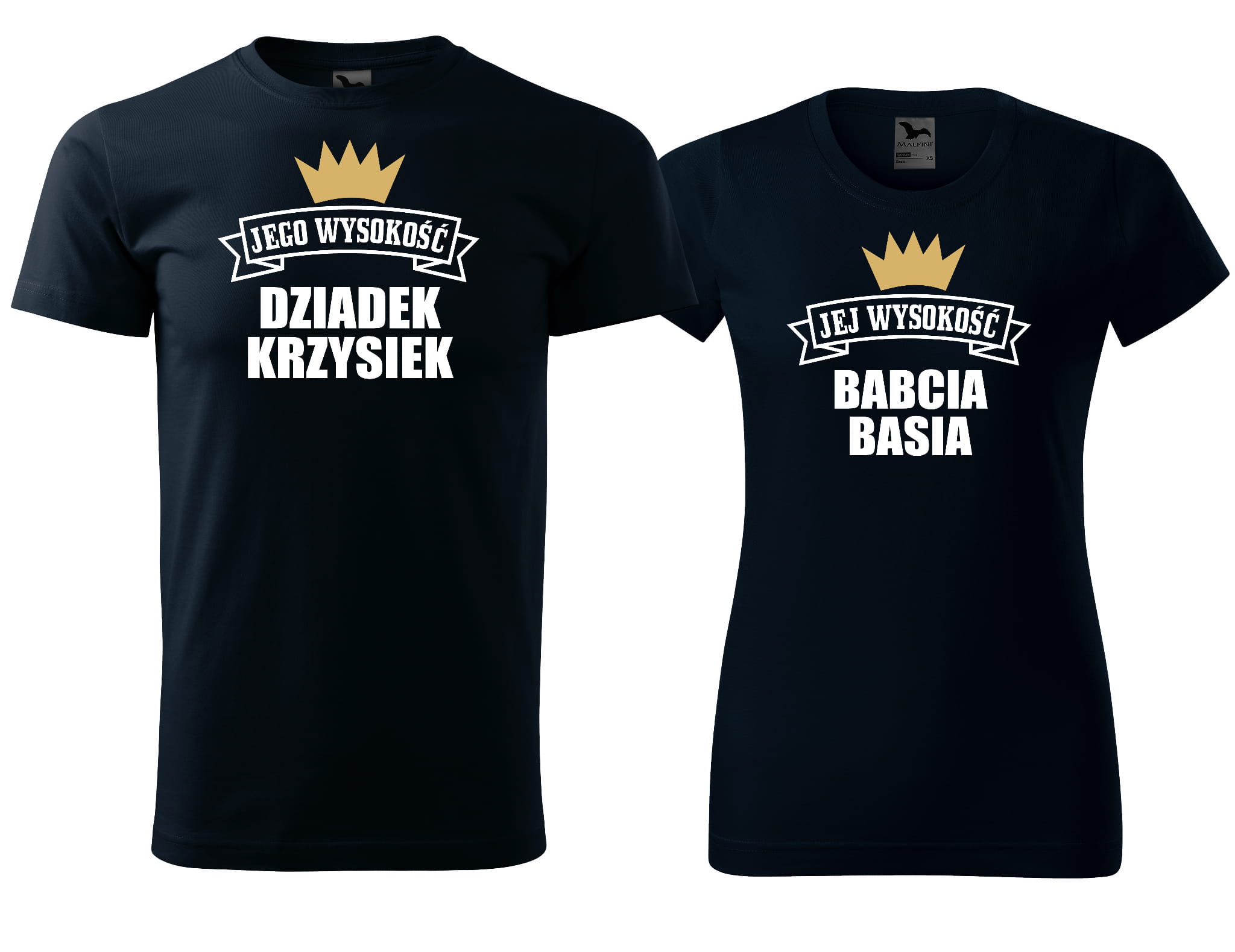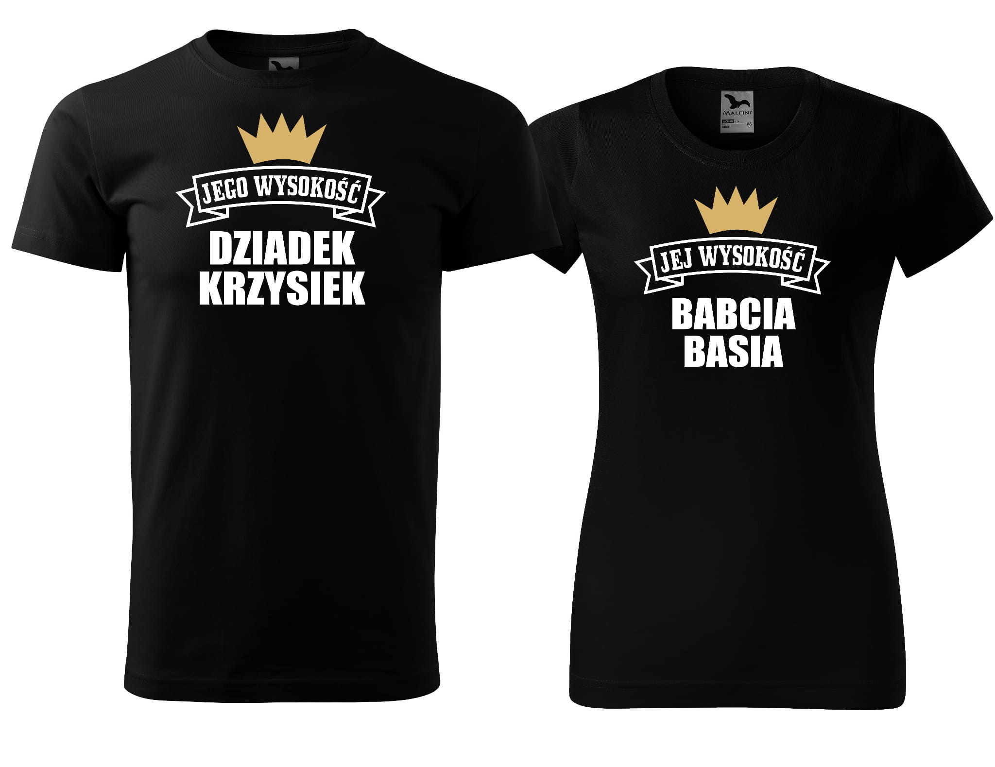 Zestaw koszulek dla Babci i Dziadka z imionami Jej Wysokość Jego wysokość