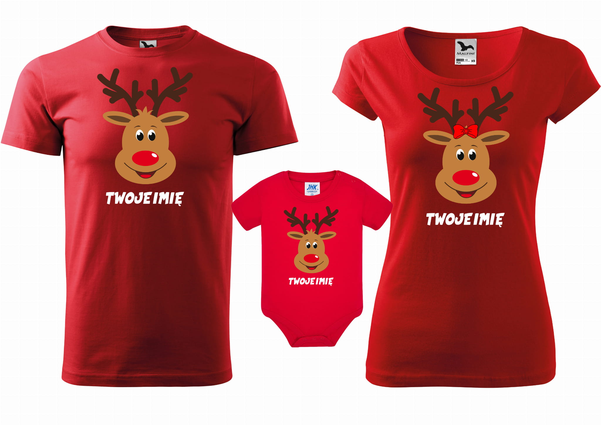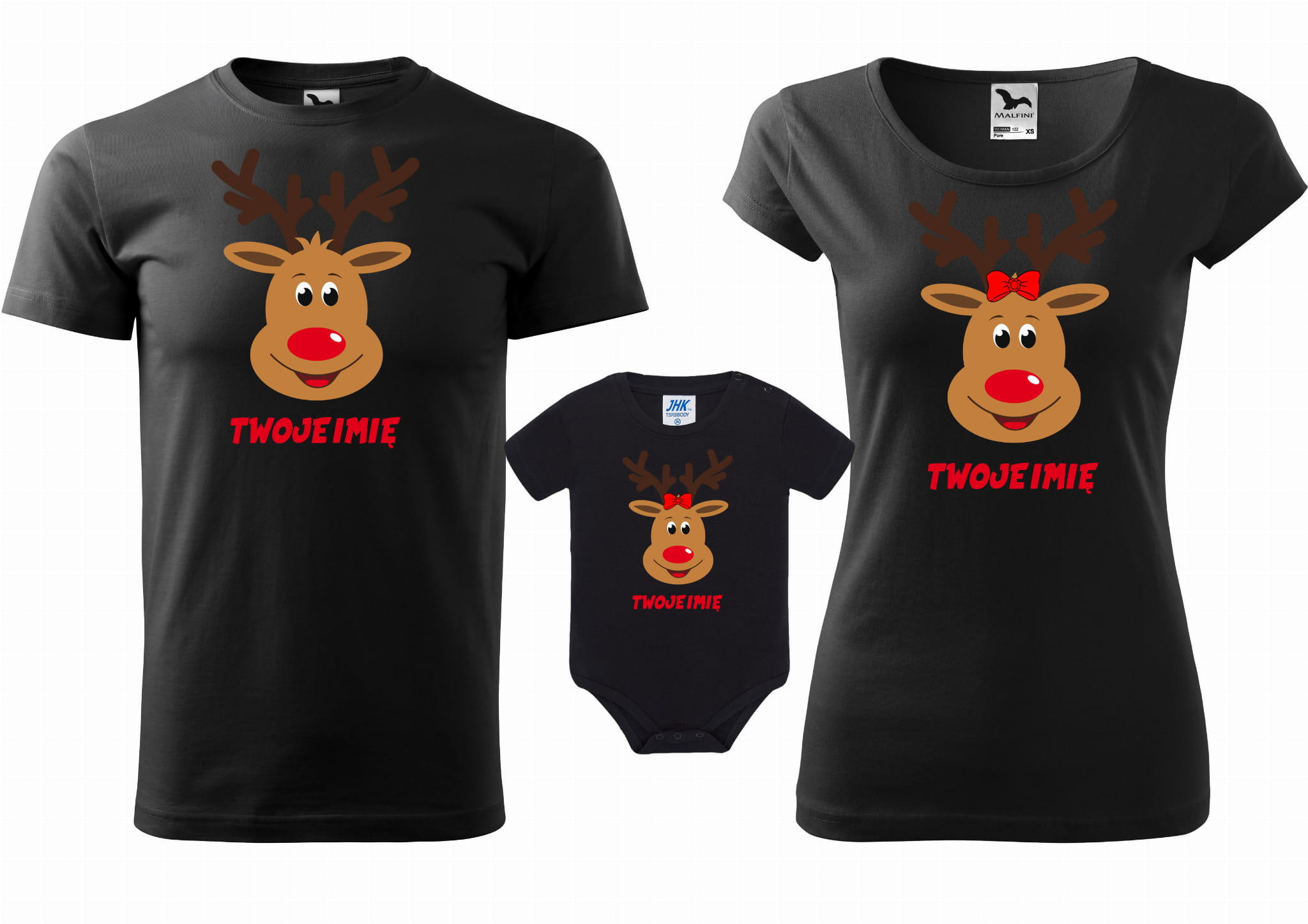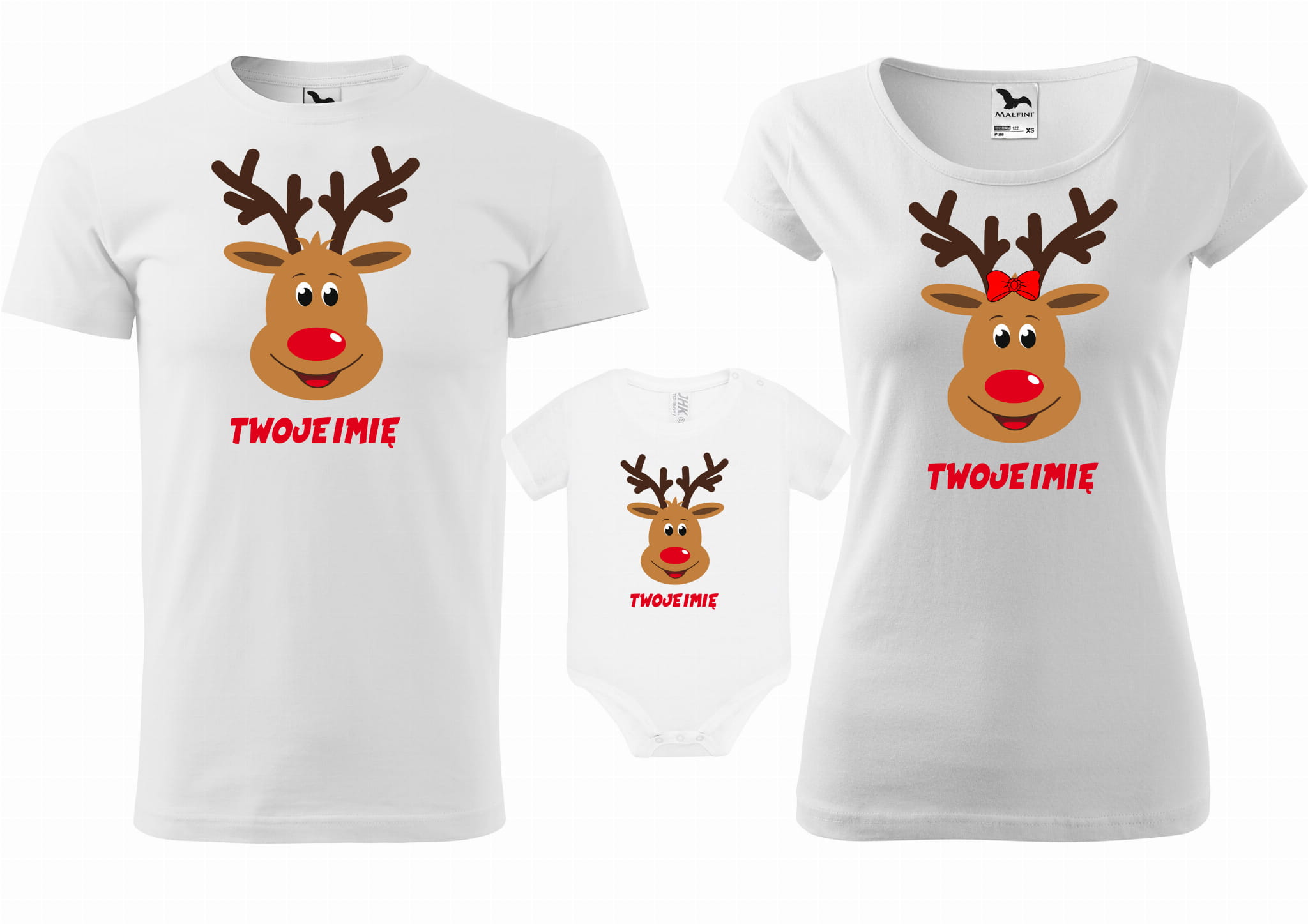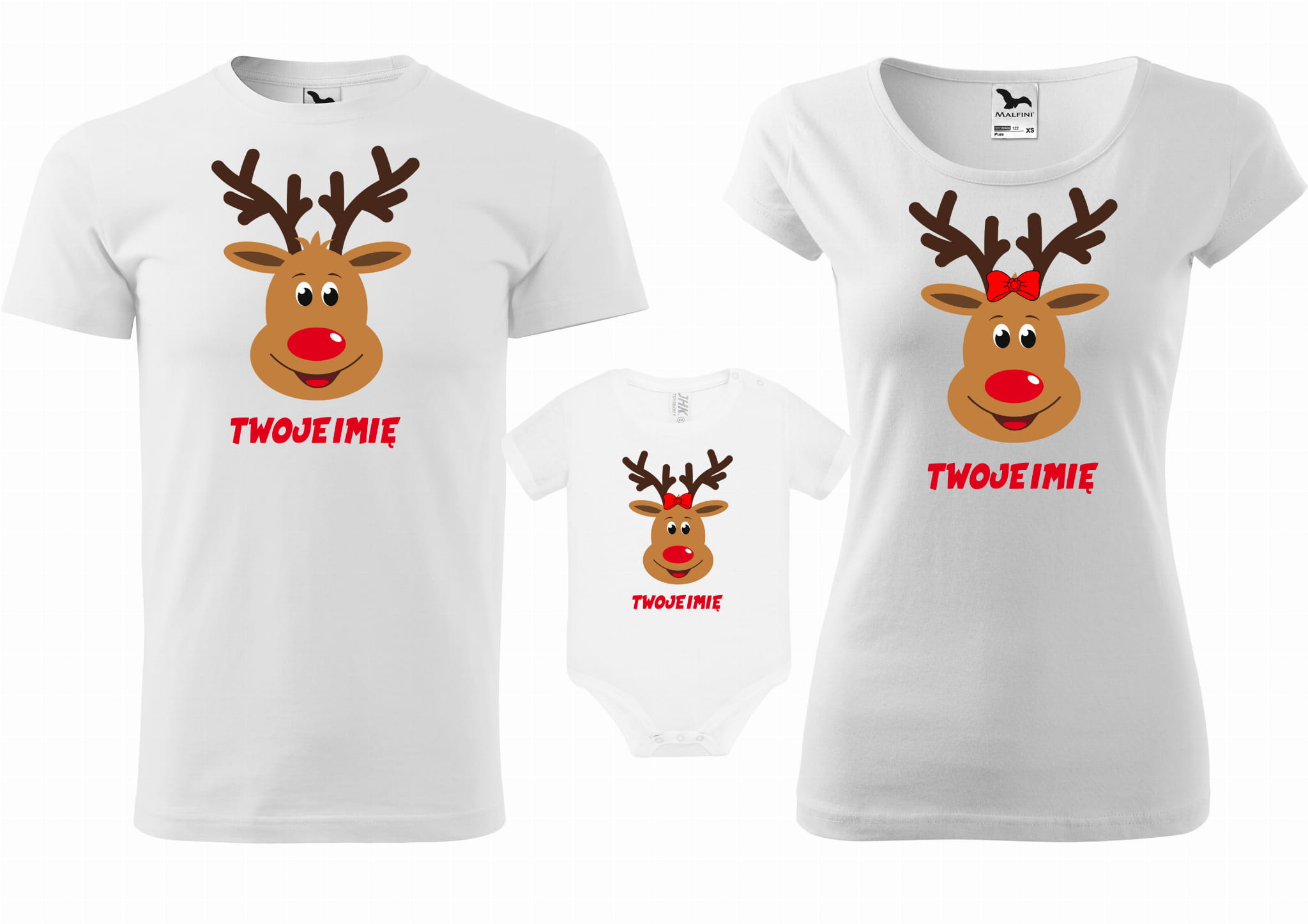 Zestaw koszulek lub body rodzinnych na sesje ŚWIĄTECZNYCH 2+1 RENIFERY + IMIĘ
