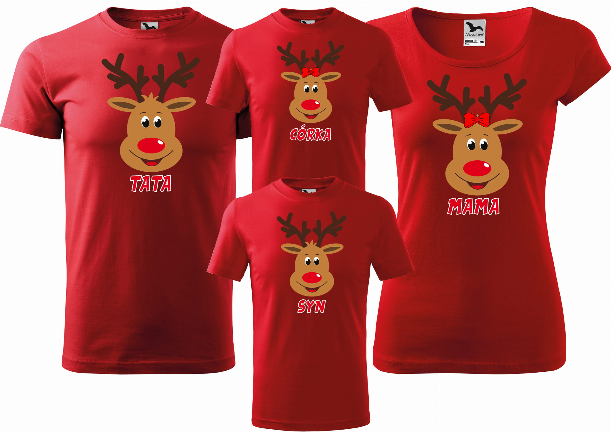 Zestaw koszulek rodzinnych na sesje ŚWIĄTECZNYCH RENIFER TATA MAMA SYN CÓRKA 2+2